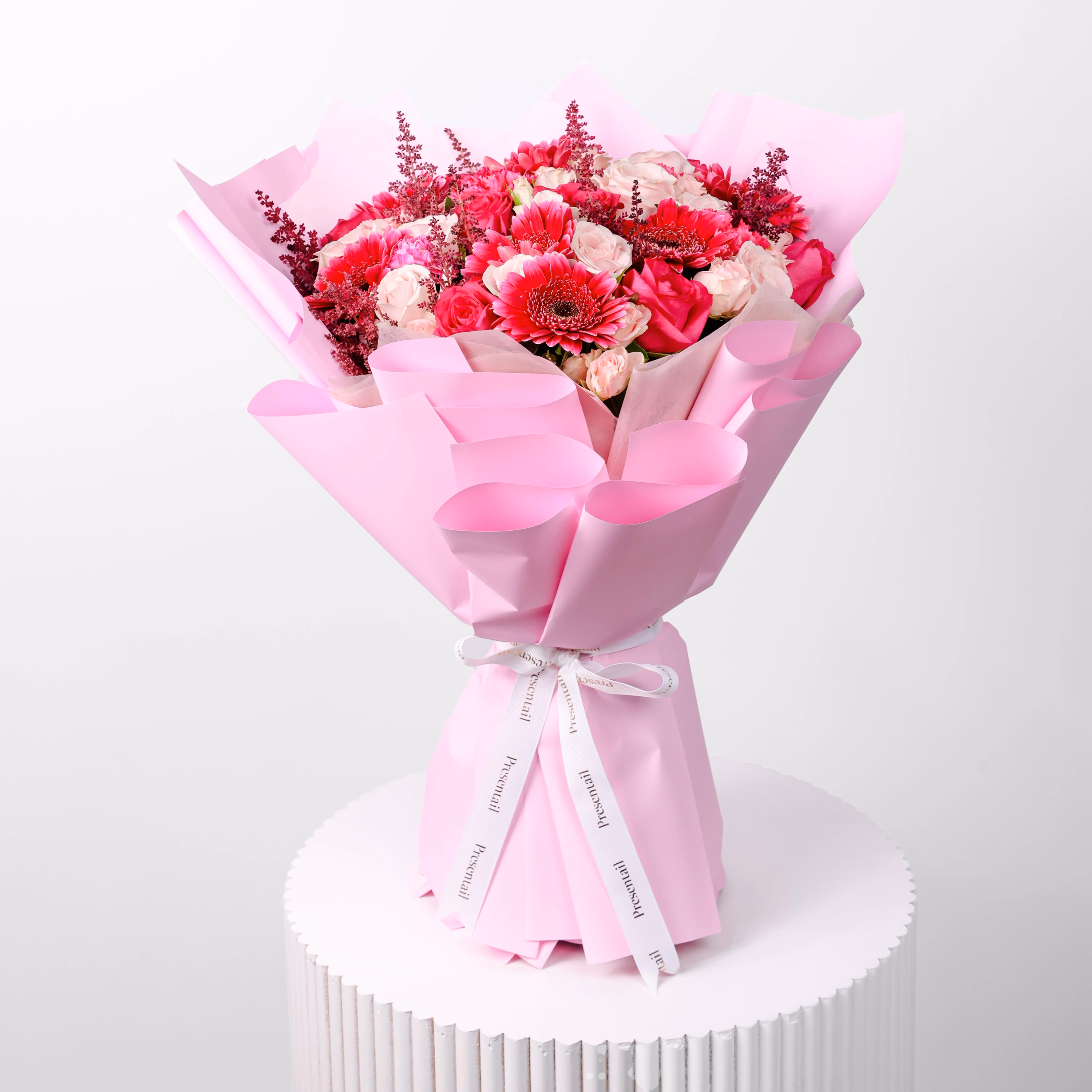 هذه الباقة عبارة عن باقة زهور متوهجة بالمعنى الحرفي للكلمة، حيث تحمل أزهاراً من أجمل الألوان معاً.