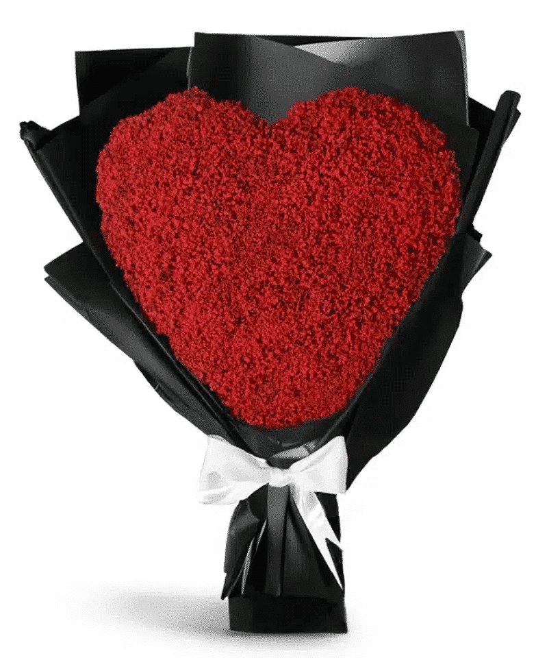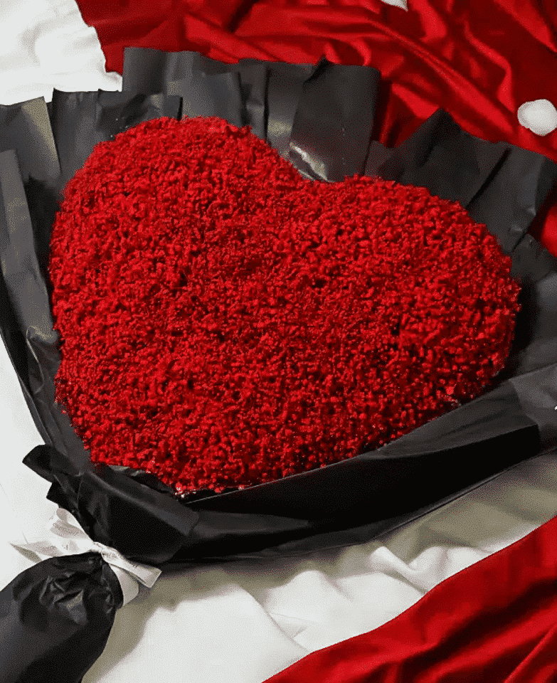تتكون باقة For The Love Of Sofil من باقة من الجبسوفيل مرشوشة باللون الأحمر ومجمعة معًا على شكل قلب لتظهر كحزمة فنية للولادة.