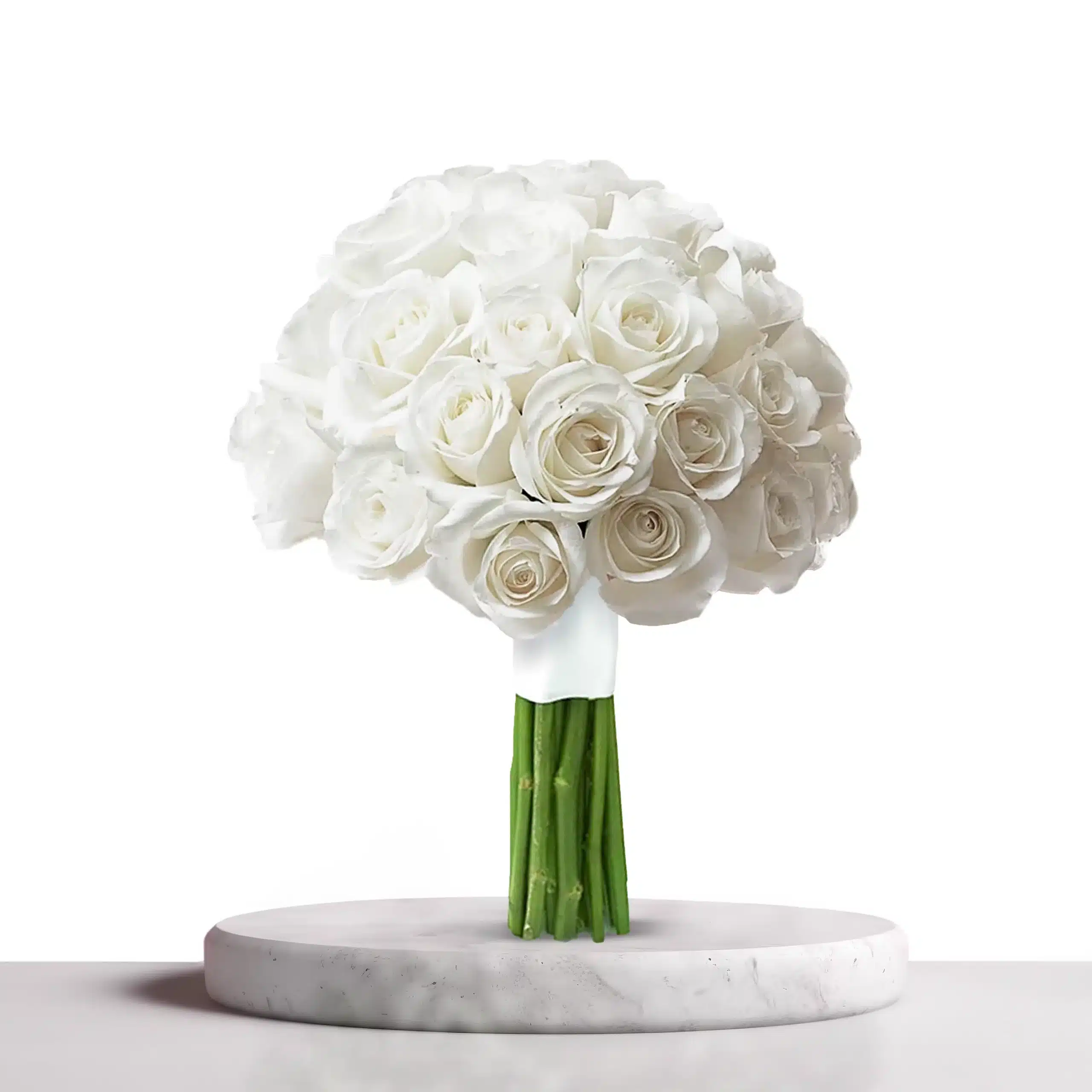باقة زفاف العروس هي باقة زفاف جميلة وبسيطة مصنوعة من الورود البيضاء والقليل من الإكسسوارات.