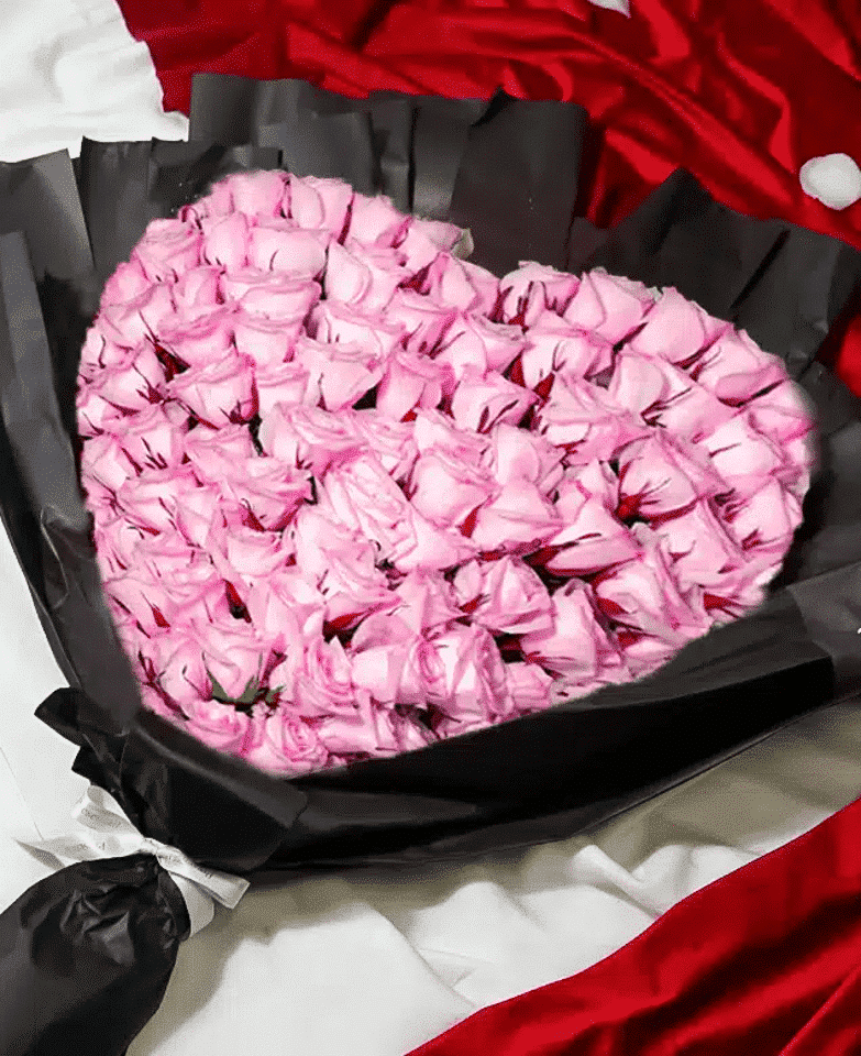 تتكون باقة القلب الوردي من الورود الوردية المجمعة معًا على شكل قلب لتعبّر عن باقة من الورود الوردية التي تم تجميعها معًا على شكل قلب.