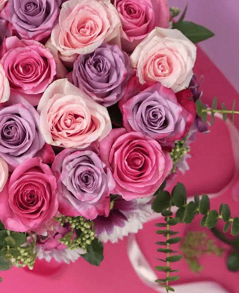 تبرز علبة زهور كبيرة جداً مصنوعة من الورود والزهور الوردية لها.