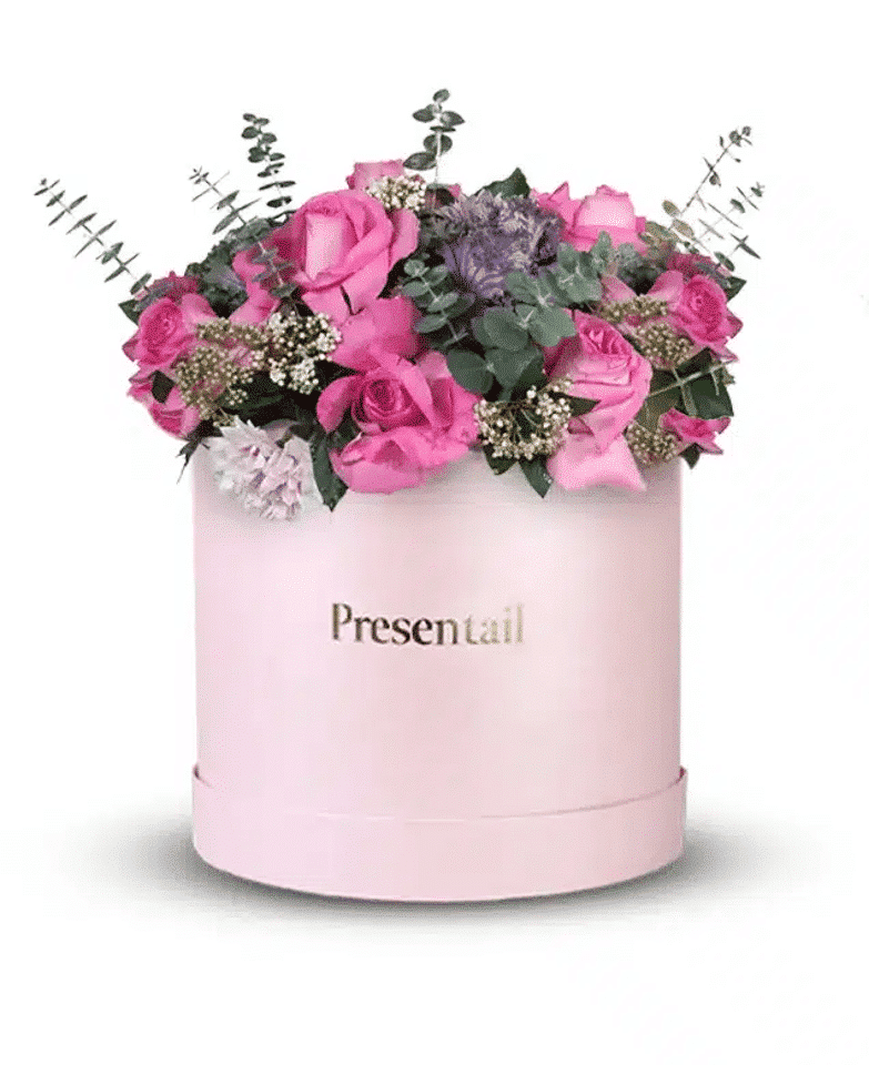مرونة للأبد عبارة عن صندوق زهور كبير جداً مصنوع من الورود والزهور الوردية لها.