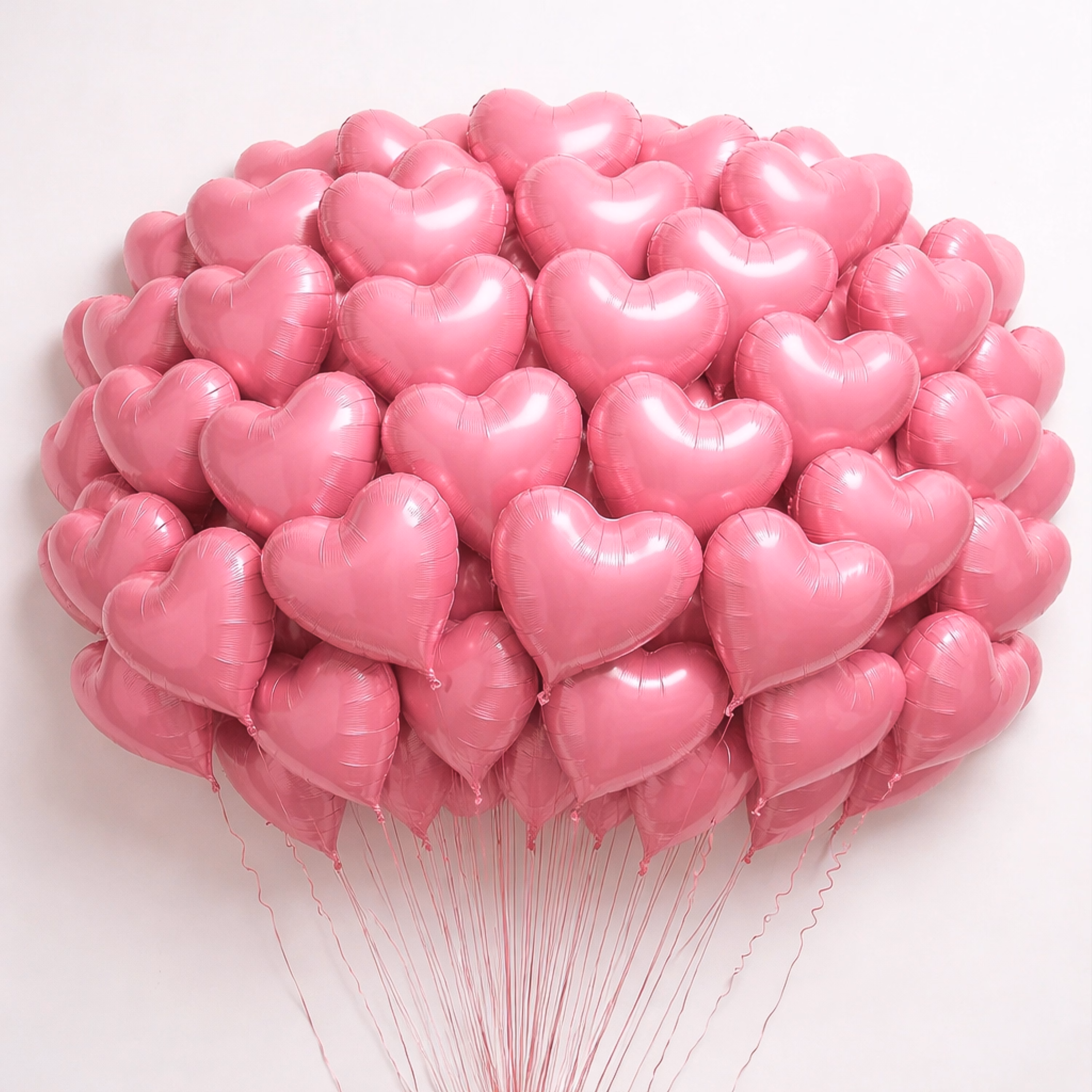A soft and elegant balloon bundle featuring delicate pink heart balloons, ideal for creating a sweet and charming romantic atmosphere.