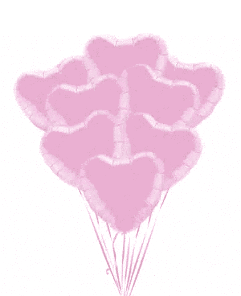 8 Pink heart balloons. Helium-filled heart shaped foil balloons. Size is 16 inch.