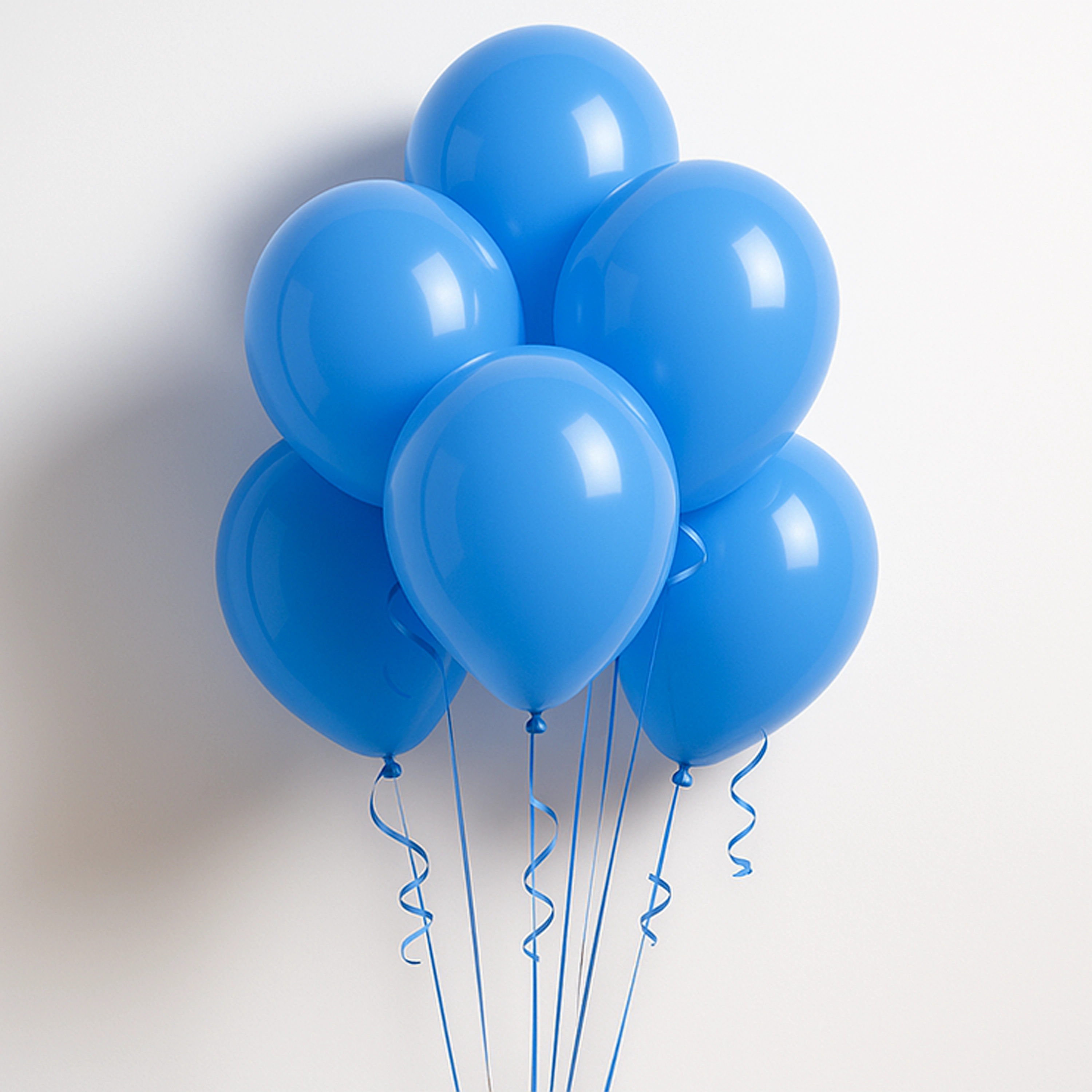 The Blue balloon bouquet includes six , 11-inch, helium-filled, latex balloons tied to strings.