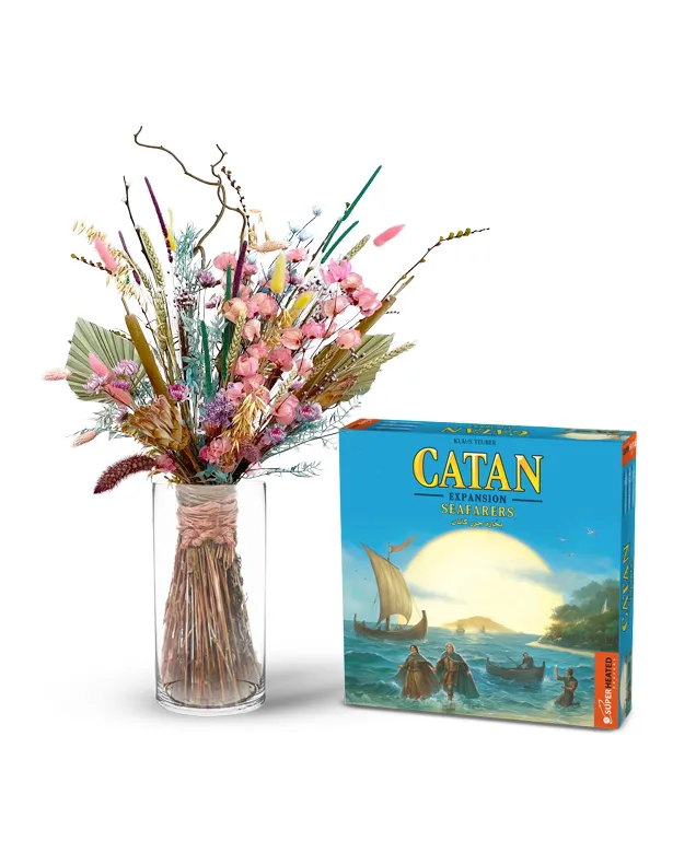 Set sail on a Catan adventure and bring the beauty of nature indoors. The Island Escape combines the exploration of Catan Seafarers with a charming dried flower bouquet.