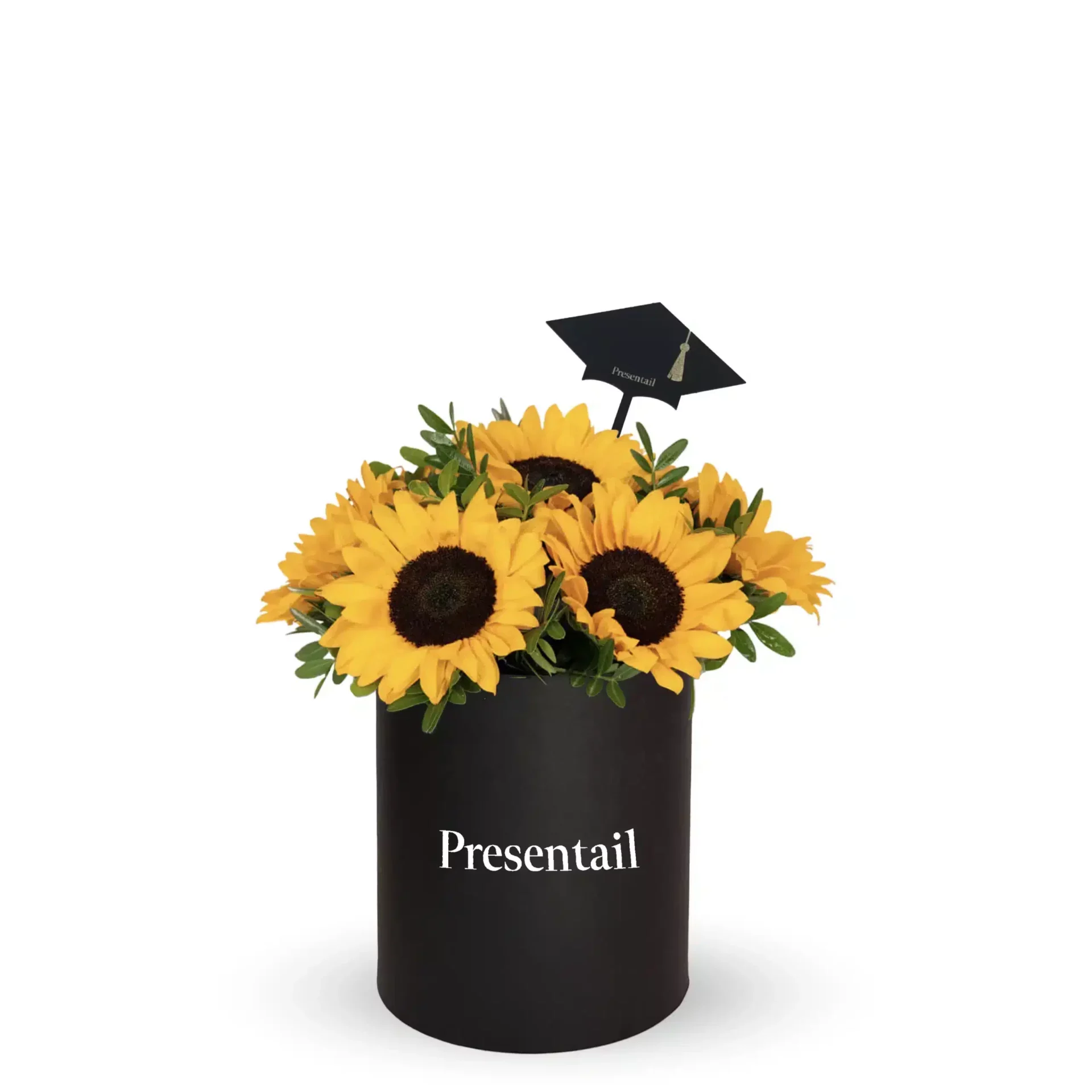 Chasing Sunflower, a cheerful bouquet of 7-10 sunflowers, complemented by two eucalyptus leaves for a fresh, vibrant touch.