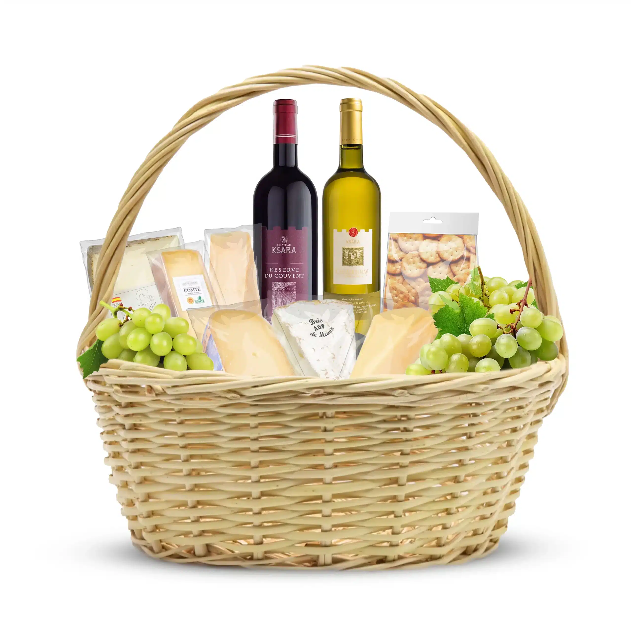 Unleash a richer flavor on the mouth and create a luxurious experience with our cheese and wine basket.