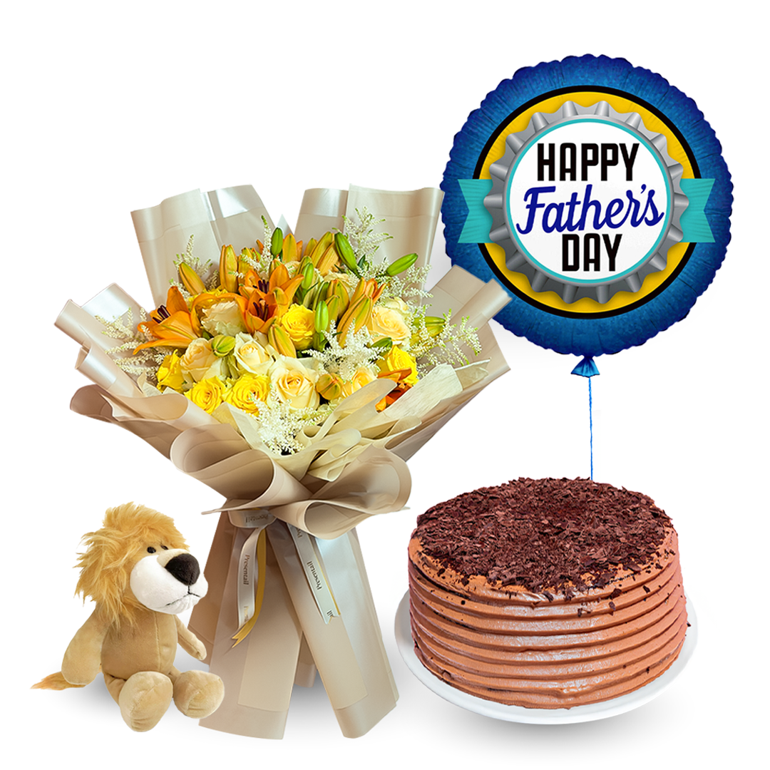 Chief of the House. A father’s day special bundle that includes: a father figure bouquet, a lion teddy bear, a Nutella cake and happy father’s day balloon