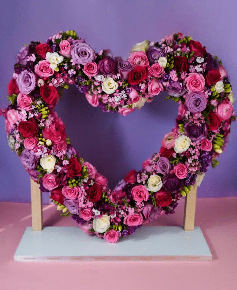 - Place the heart-shaped flower stand on a stable and flat surface.