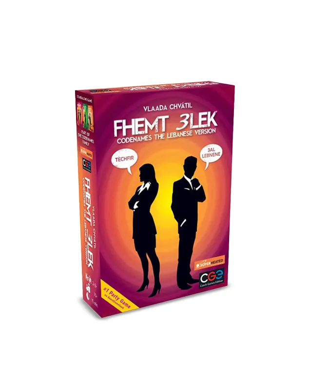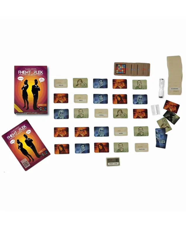 In Fhemt 3lek Lebanese Codenames, the official Lebanese version of Codenames, two teams compete to see who can make contact with all of their agents first. Spymasters give one-word clues that can point to multiple words on the board. Their teammates try to guess words of the right color while avoiding those that belong to the opposing team. And everyone wants to avoid the assassin.