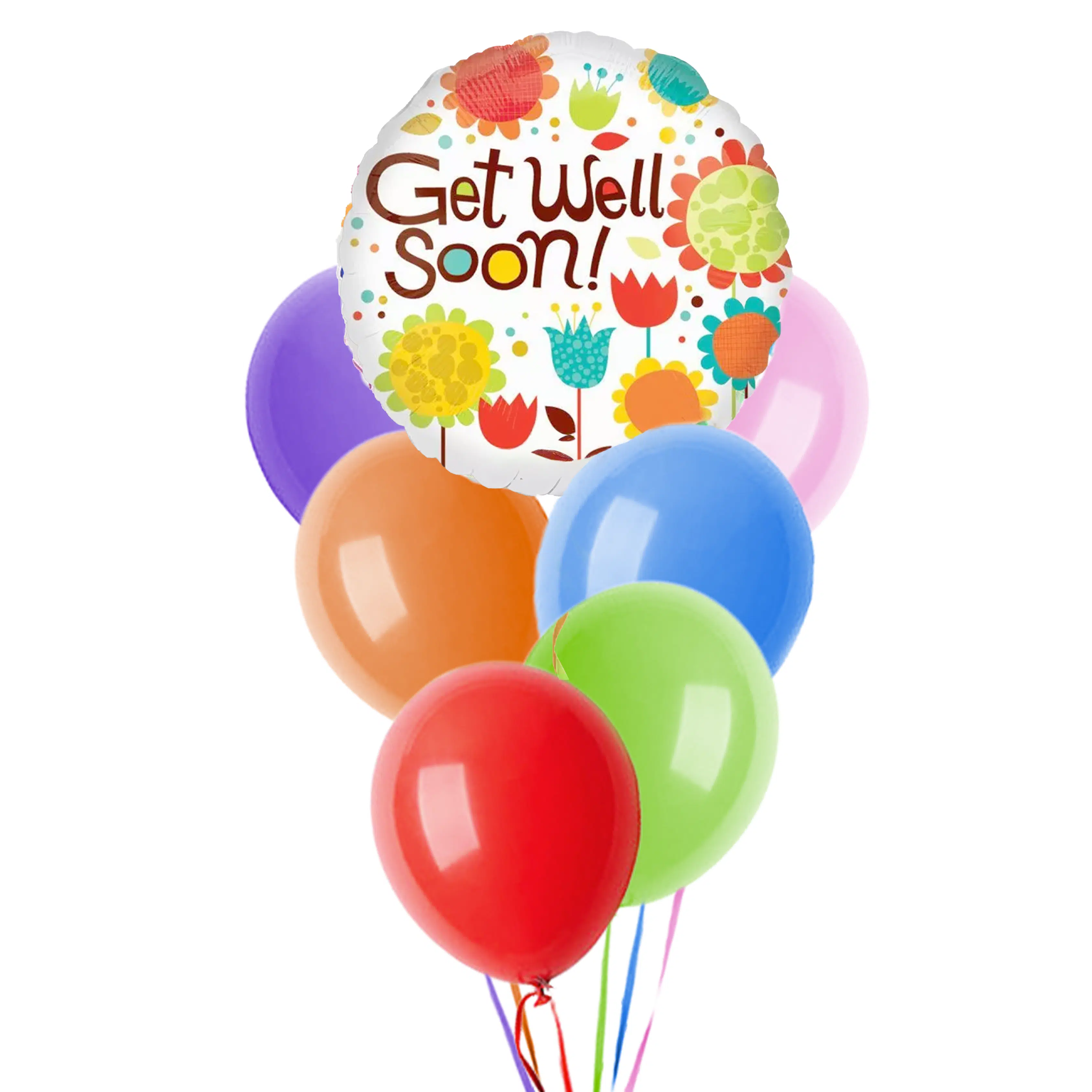 Our Get Well soon balloon bundle includes: One Get Well Soon, 18 inch foil balloon, and five 12-inch latex balloons. All are helium-filled