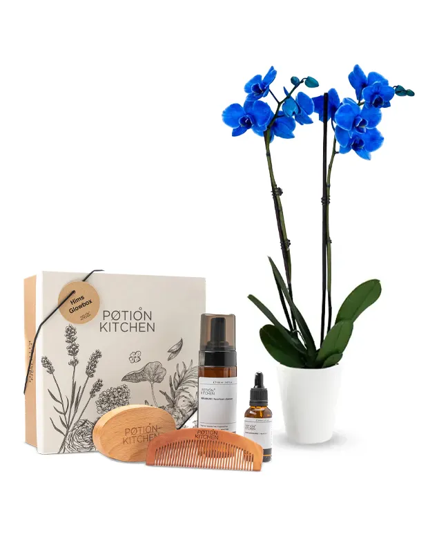 The Glowbox for Him is specially made for him. It includes the HIMS GLOWBOX and blue orchids.