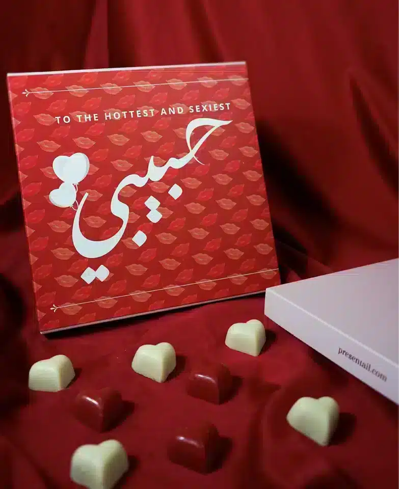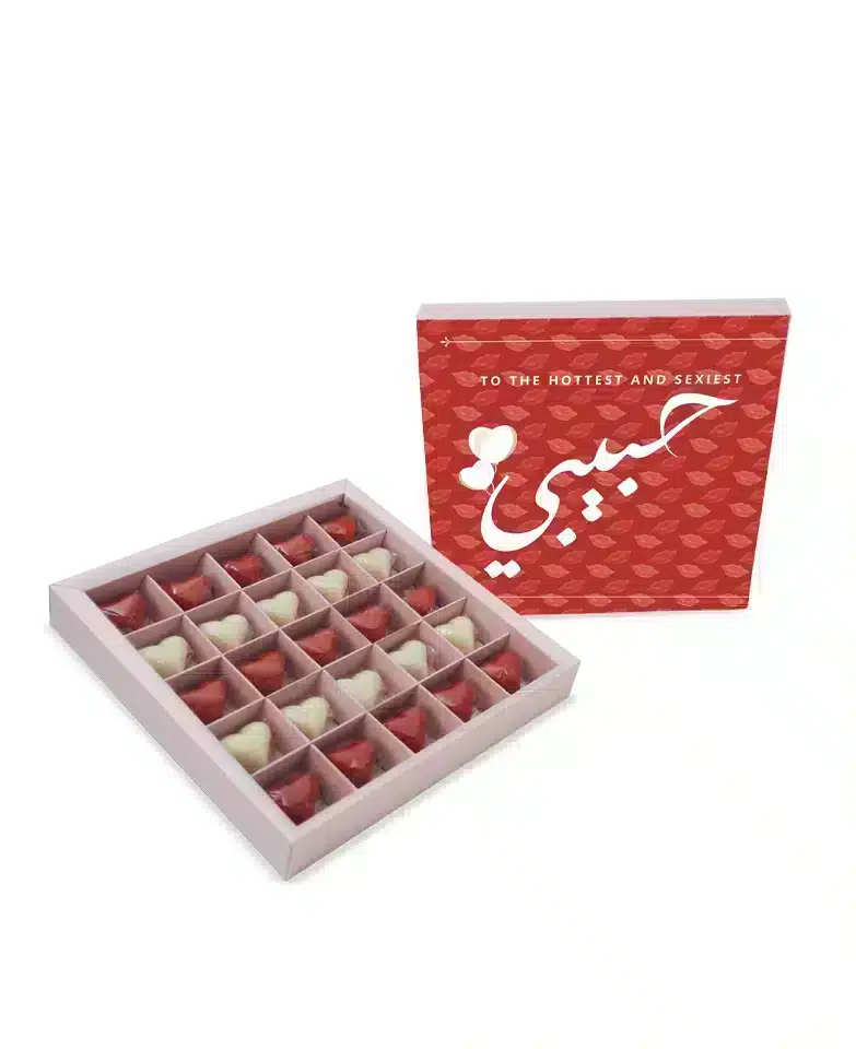 To your hottest and sexiest, the Habibi Sweets Box is a large sweets box containing 25 pieces of heart-shaped chocolate.