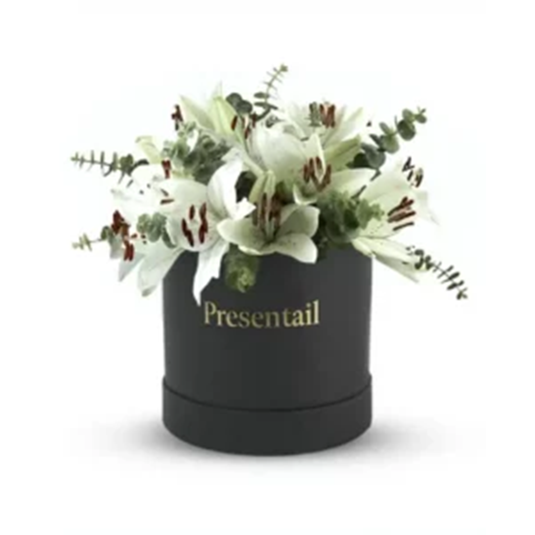 A cute Large sized box of White lilies. Match your lilies with a box color to create the cutest flower gifts.
