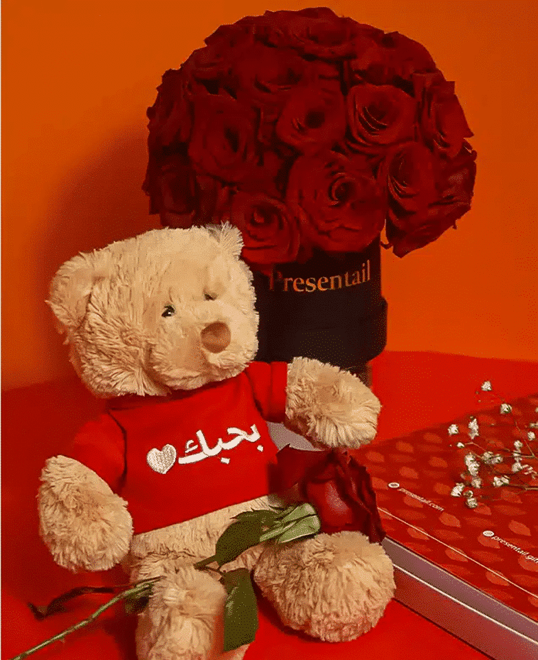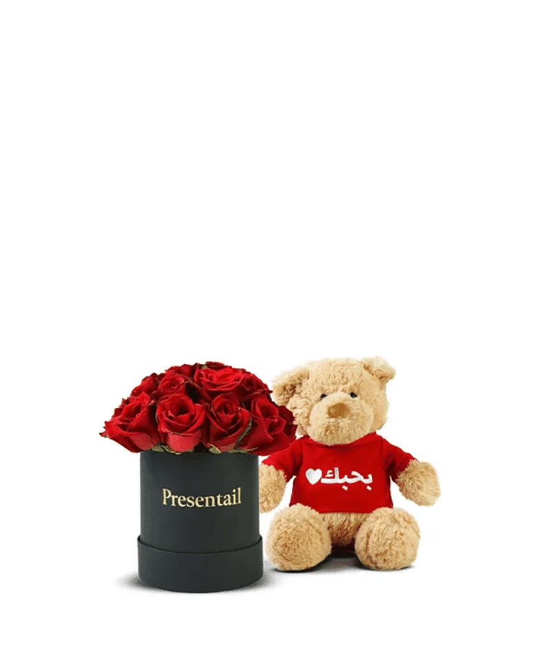 Send someone a love message with this cute love bear & roses, contained in an elegant small sized flower box of 20 roses.