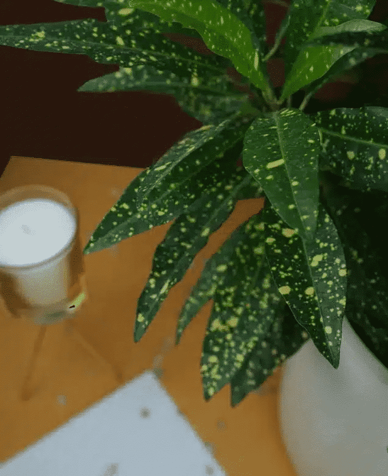 Marbled Croton is an indoor and outdoor plant. It has marble like patches on its leaves.