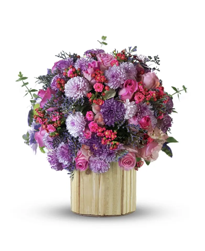 This charming flower box features a delightful mix of soft pink baby roses, fluffy chrysanthemums, and classic pink roses. Arranged beautifully in a stylish box, it’s a guaranteed way to brighten mama’s day.
