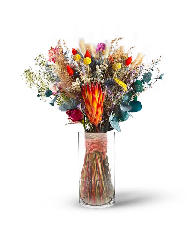 The “Whimsical Affection” dried flower bouquet is a stunning and enchanting arrangement that captures the essence of nature’s fleeting beauty, preserved to be cherished for years to come. Delicately crafted with an artistic touch, this bouquet exudes a sense of romance, nostalgia, and a touch of whimsy. Vase included