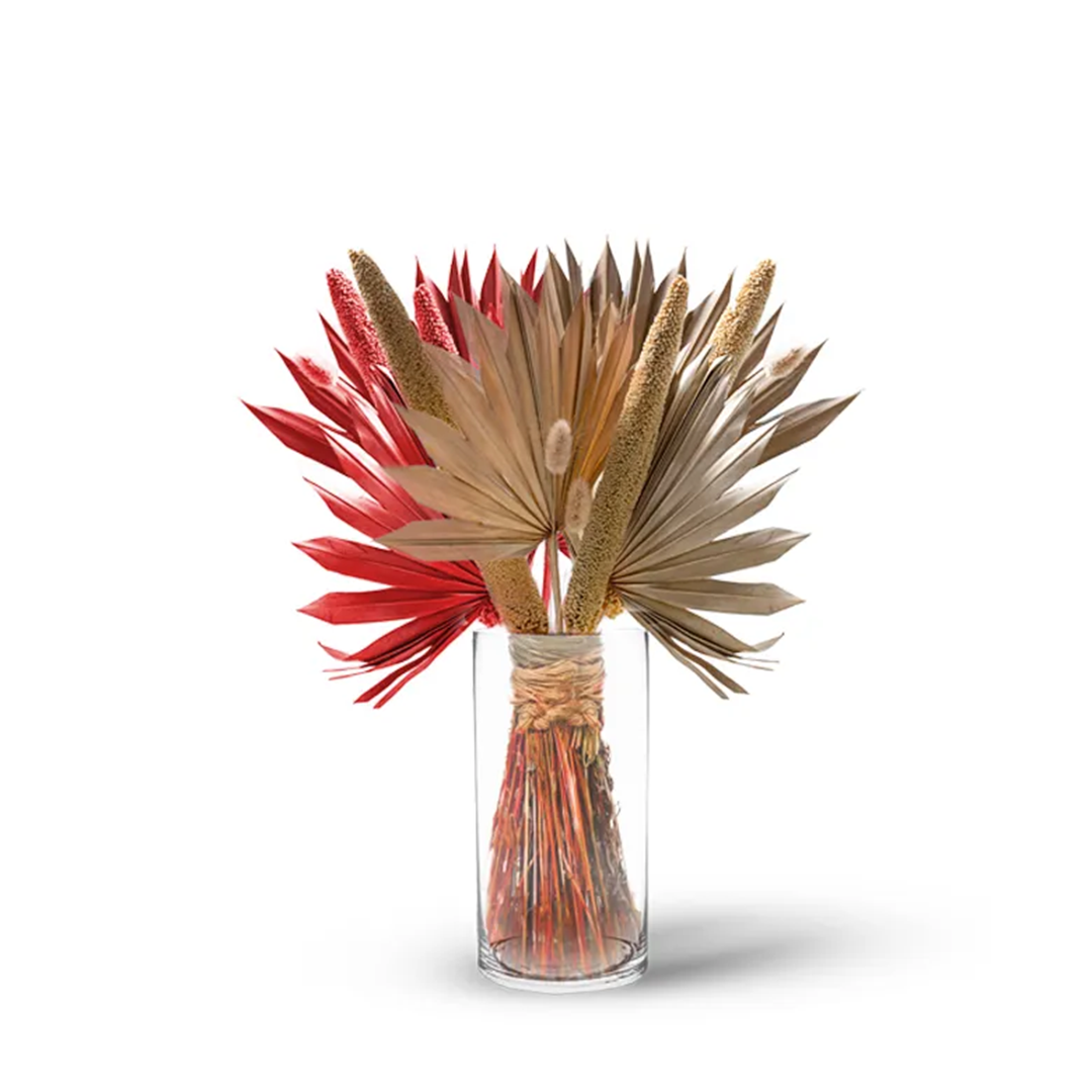 The “Wildflower Meadow” dried flower bouquet captures the untamed beauty and whimsy of a sun-kissed meadow in full bloom. This enchanting arrangement showcases a harmonious blend of delicate flora, each bloom carefully preserved to retain its vivid colors and intricate textures. Vase included