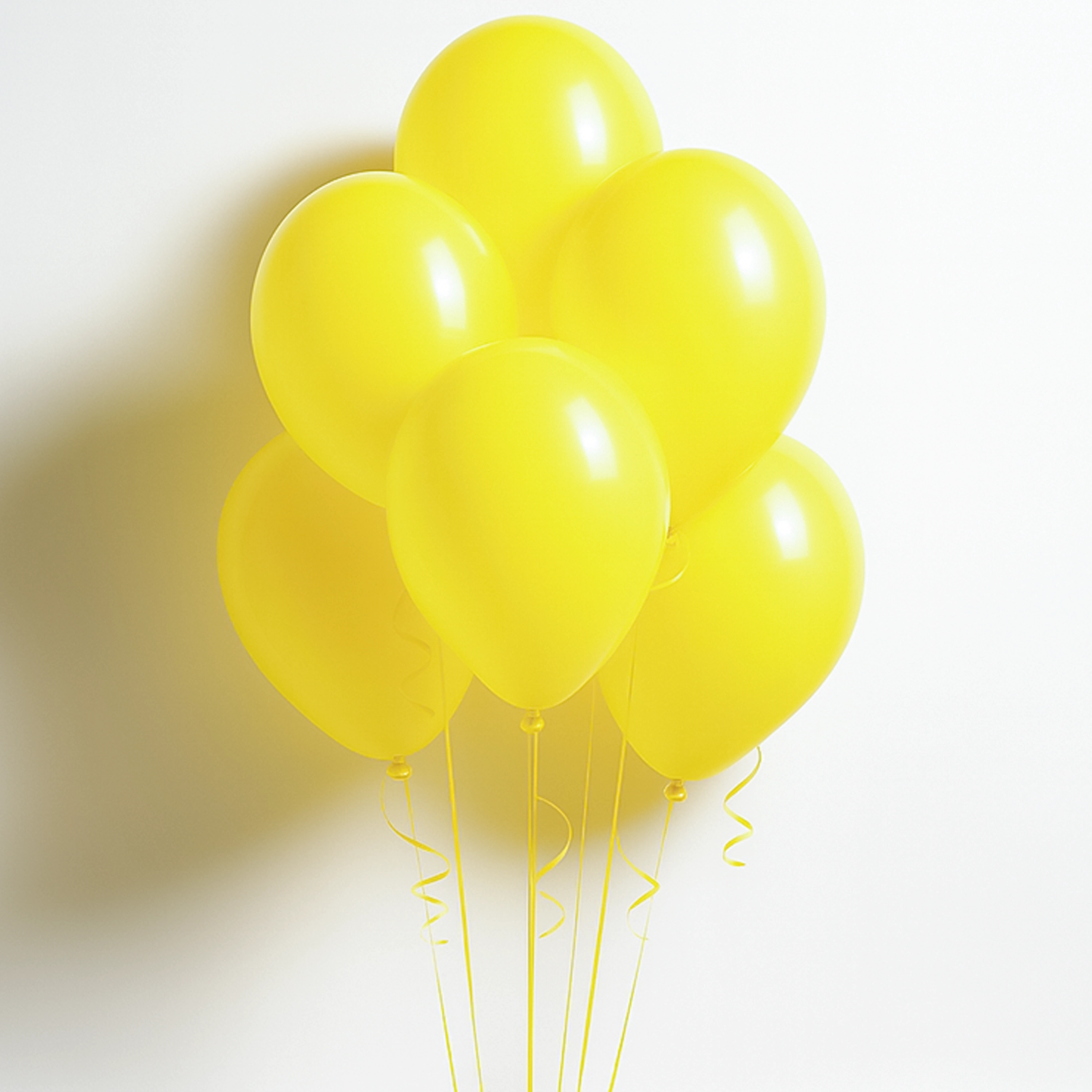 The Yellow balloon bouquet includes six , 11-inch, helium-filled, latex balloons tied to strings.