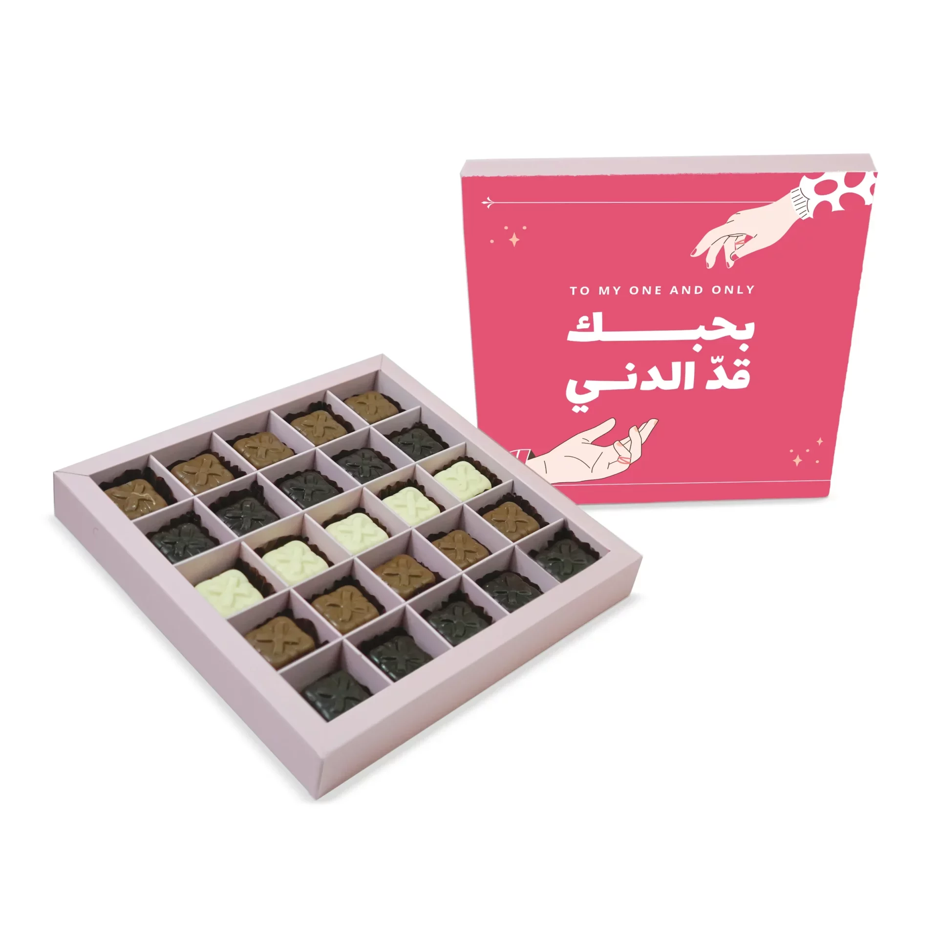 The Bhebbak ad el Diny Sweets Box s a large sweets box containing 25 pieces of chocolate, made specially for your loved ones.