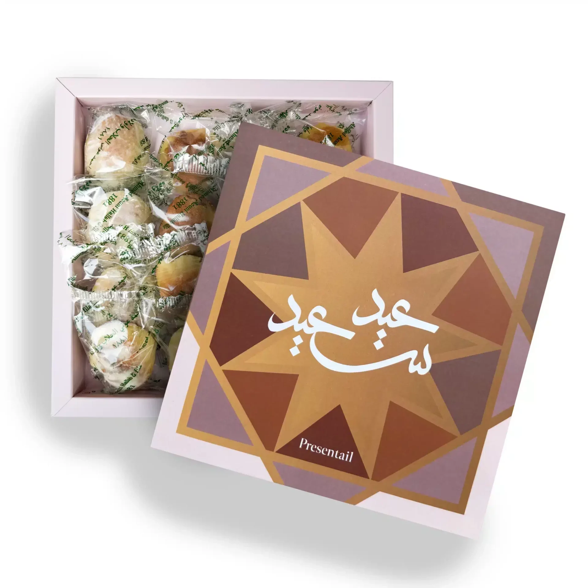 Celebrate this Eid by sending your loved ones this box of Maamoul. This box contains 12 Maamoul made by Hallab 1881, individually wrapped pieces stuffed with a variety of fillings such as Minced Dates Ground Walnuts and Ground Pistachios.