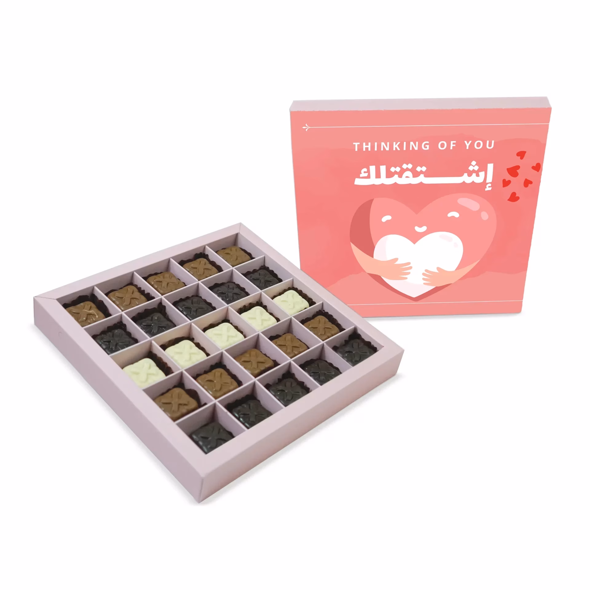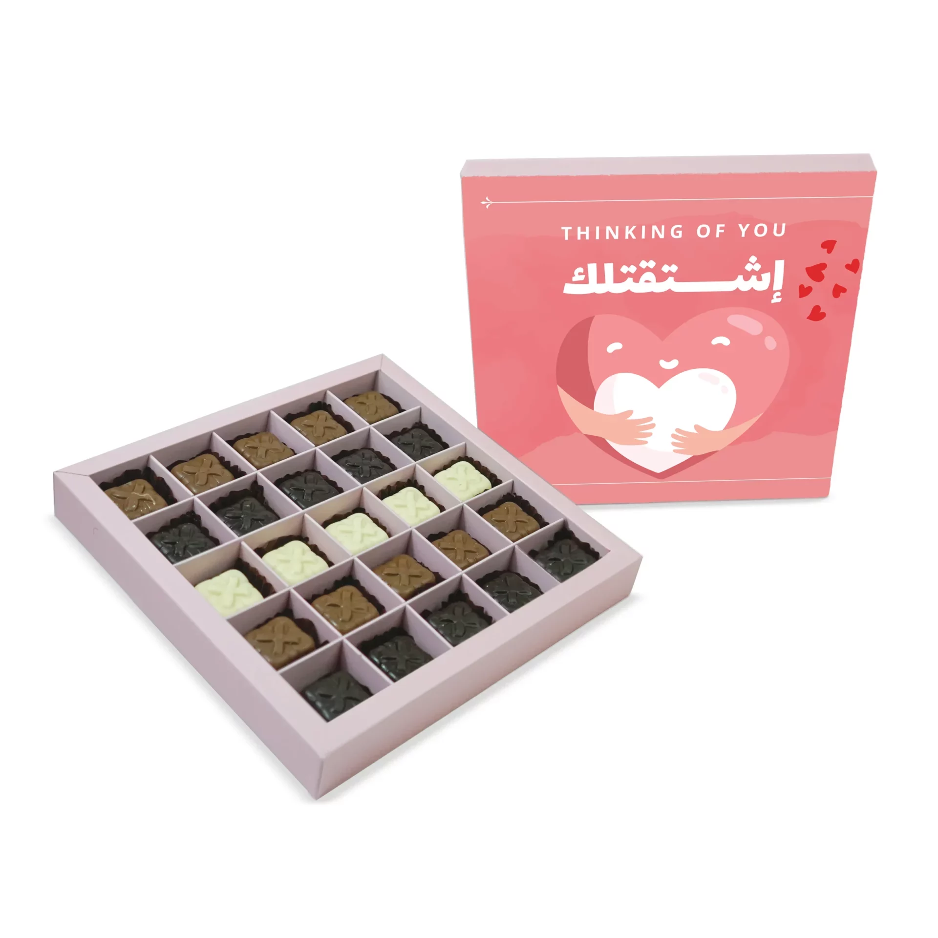 The Miss You Sweets Box is a large sweets box containing 25 pieces of chocolate, made specially for you to express your heartache from missing someone.