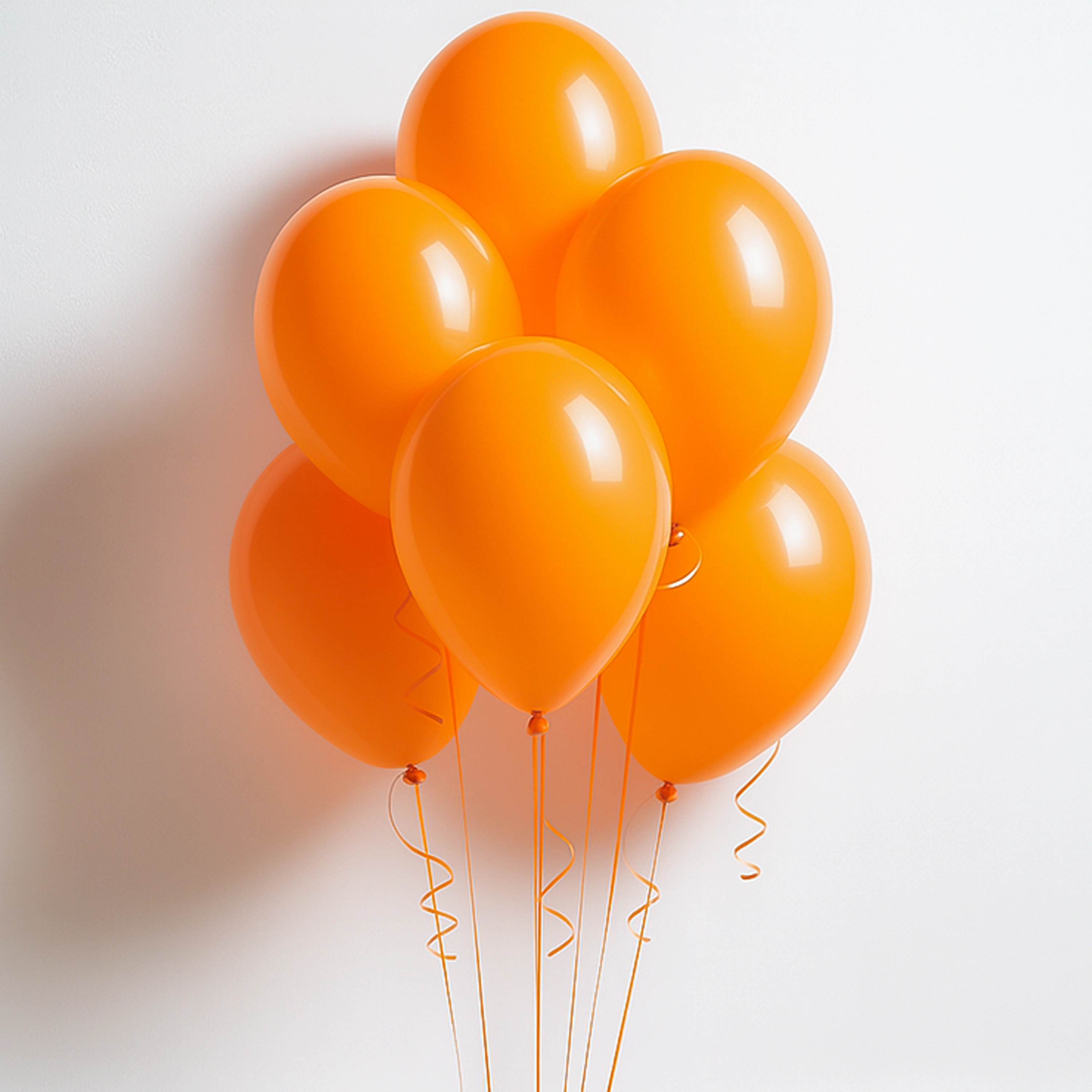 The Orange balloon bouquet includes six, 11-inch, helium-filled, latex balloons tied to strings.