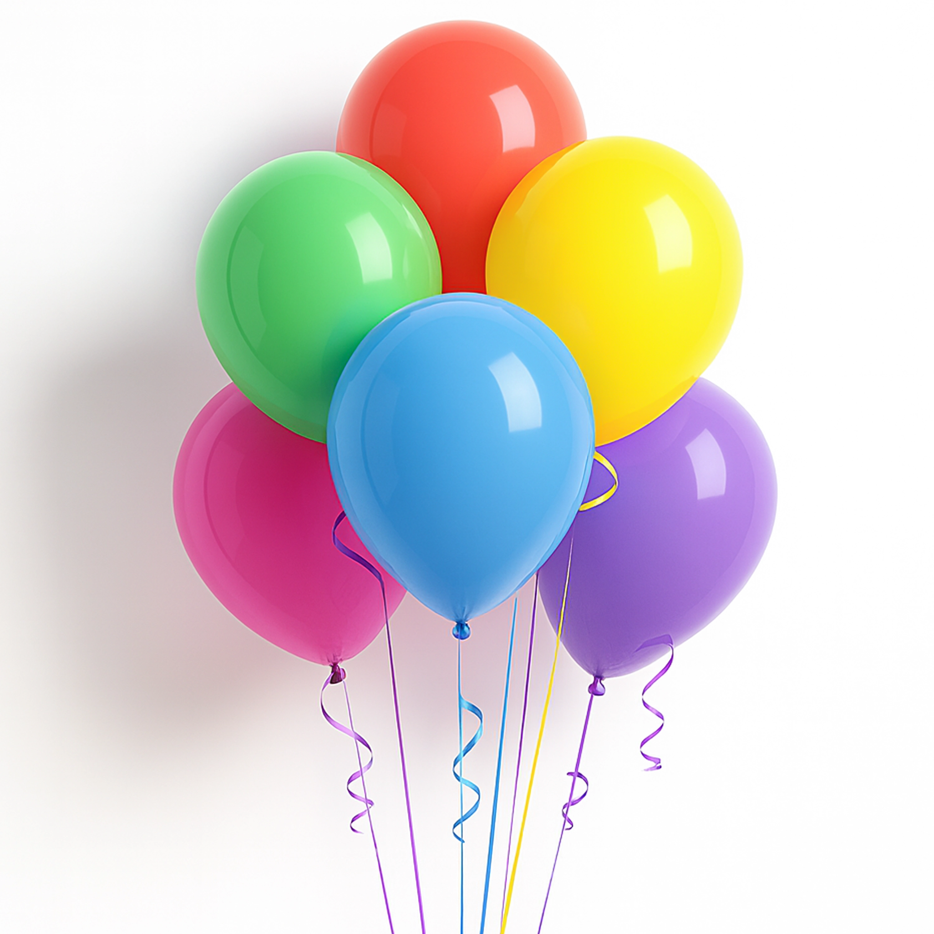 The Colorful balloon bouquet includes six , 11-inch, helium-filled, color mixed, latex balloons tied to strings.