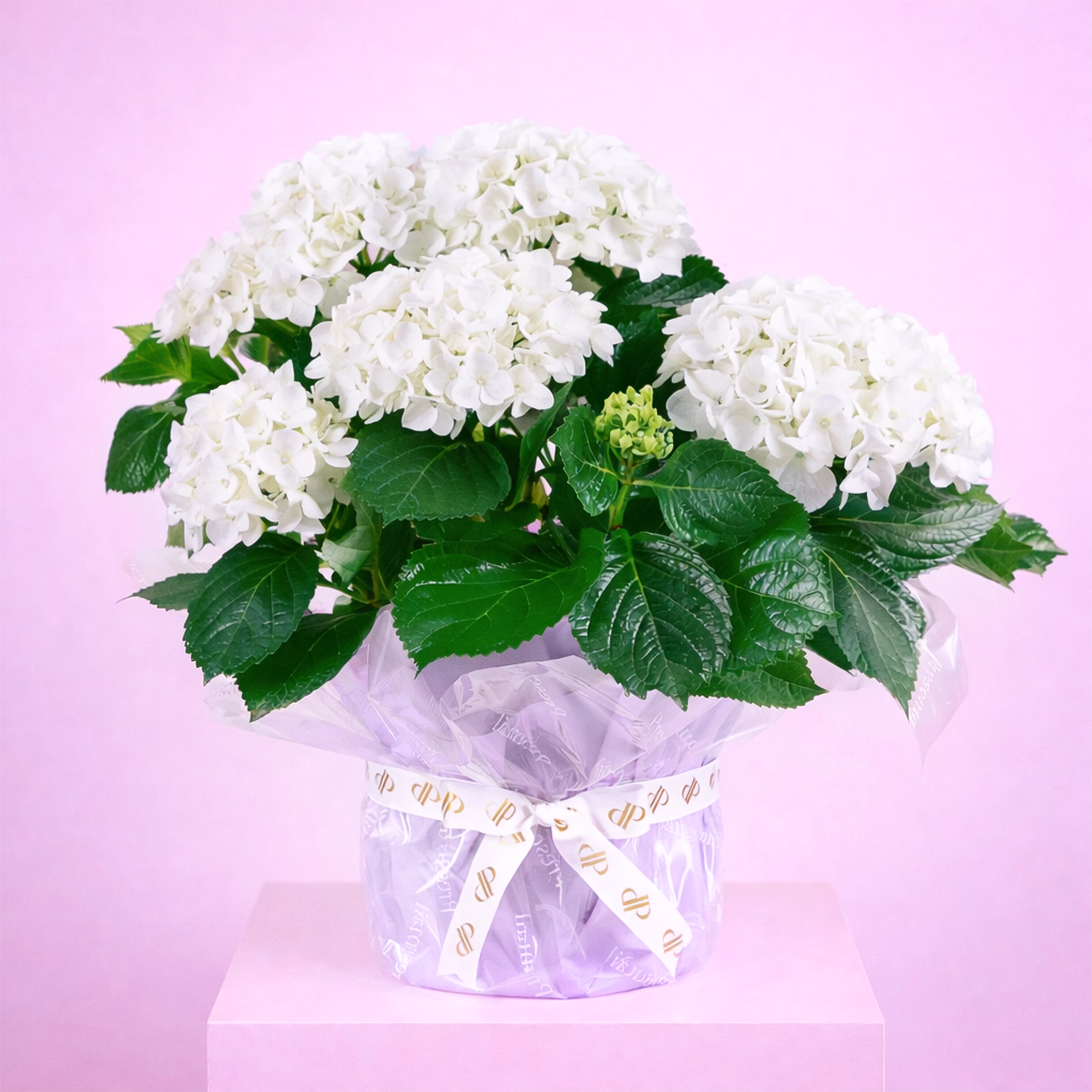 White Hydrangea flowers offer a soft and elegant look that brightens any room. A graceful and meaningful Mother’s Day gift.