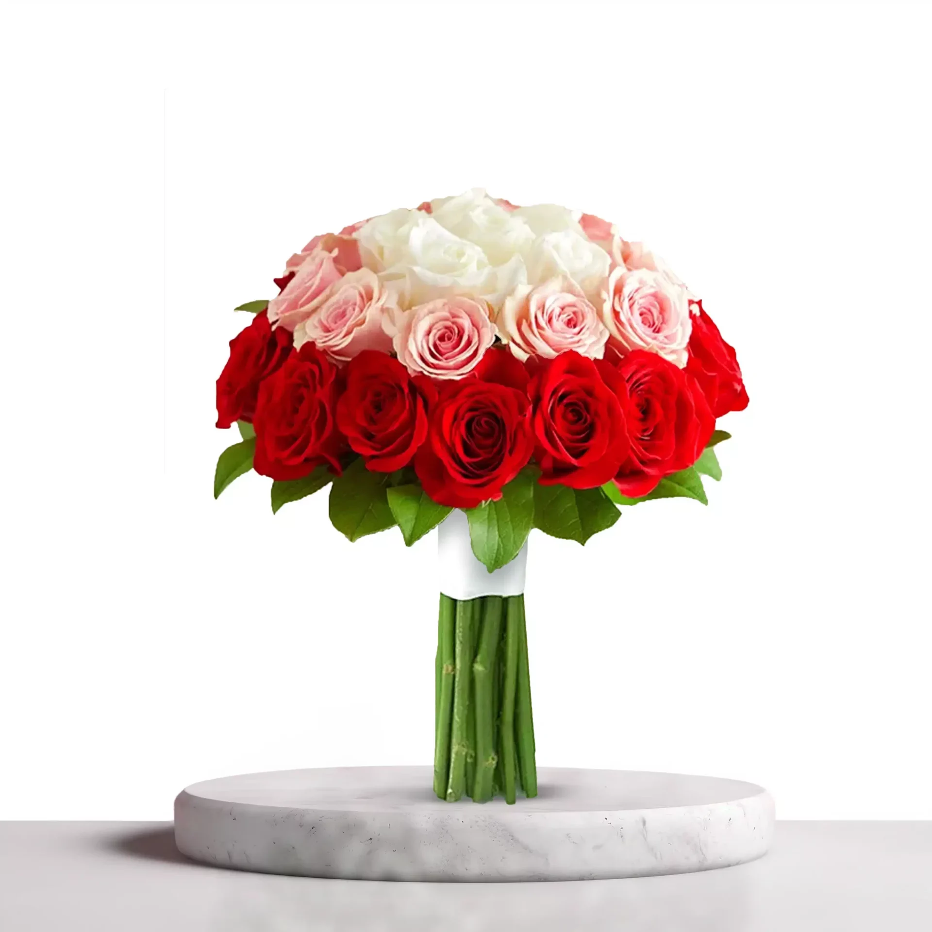 باقة الزفاف الحمراء مصنوعة من الورود الحمراء والجبسوفيلا لمرافقة العروس أو هدية لزوجة مقبلة على الزواج.