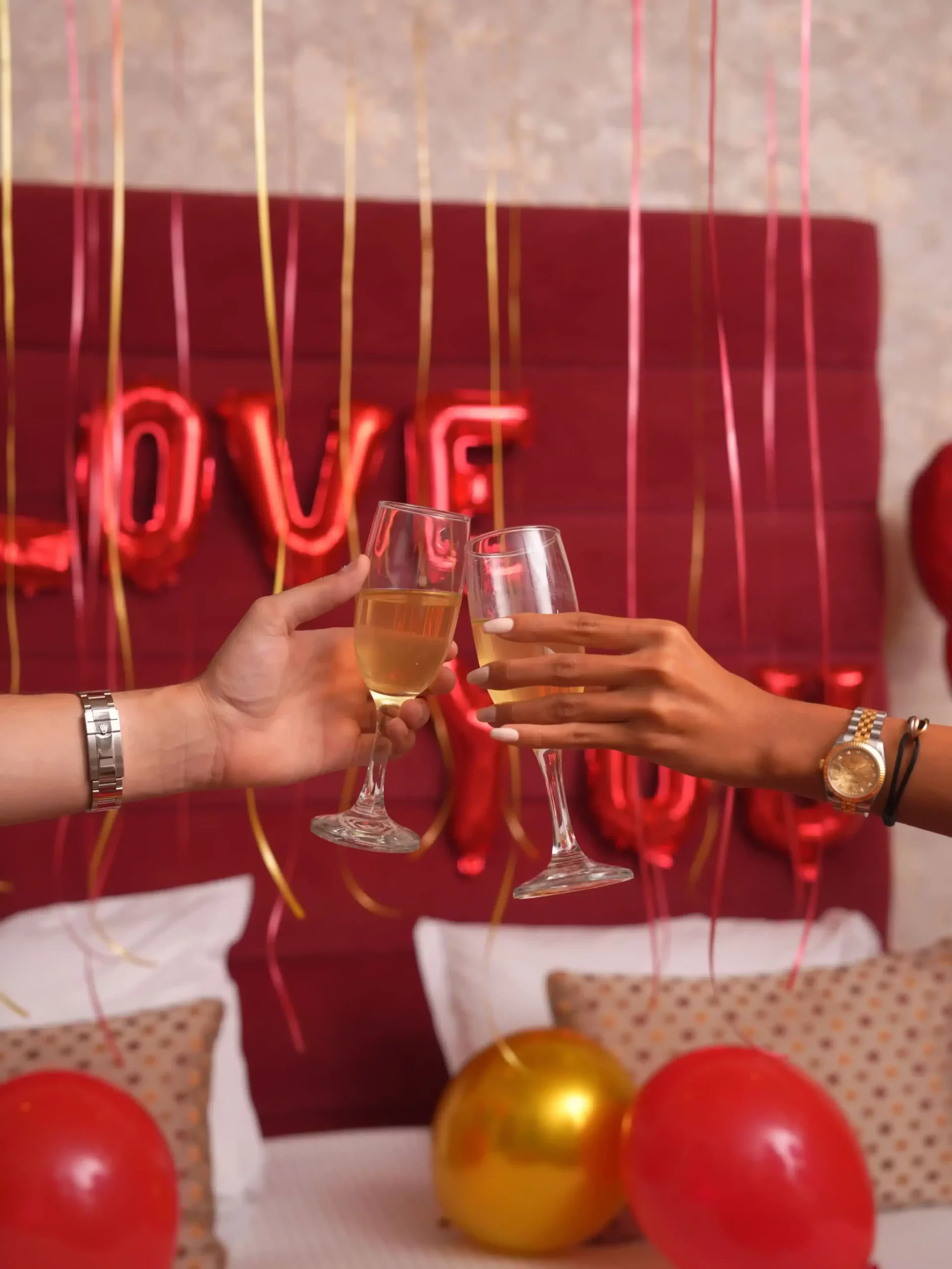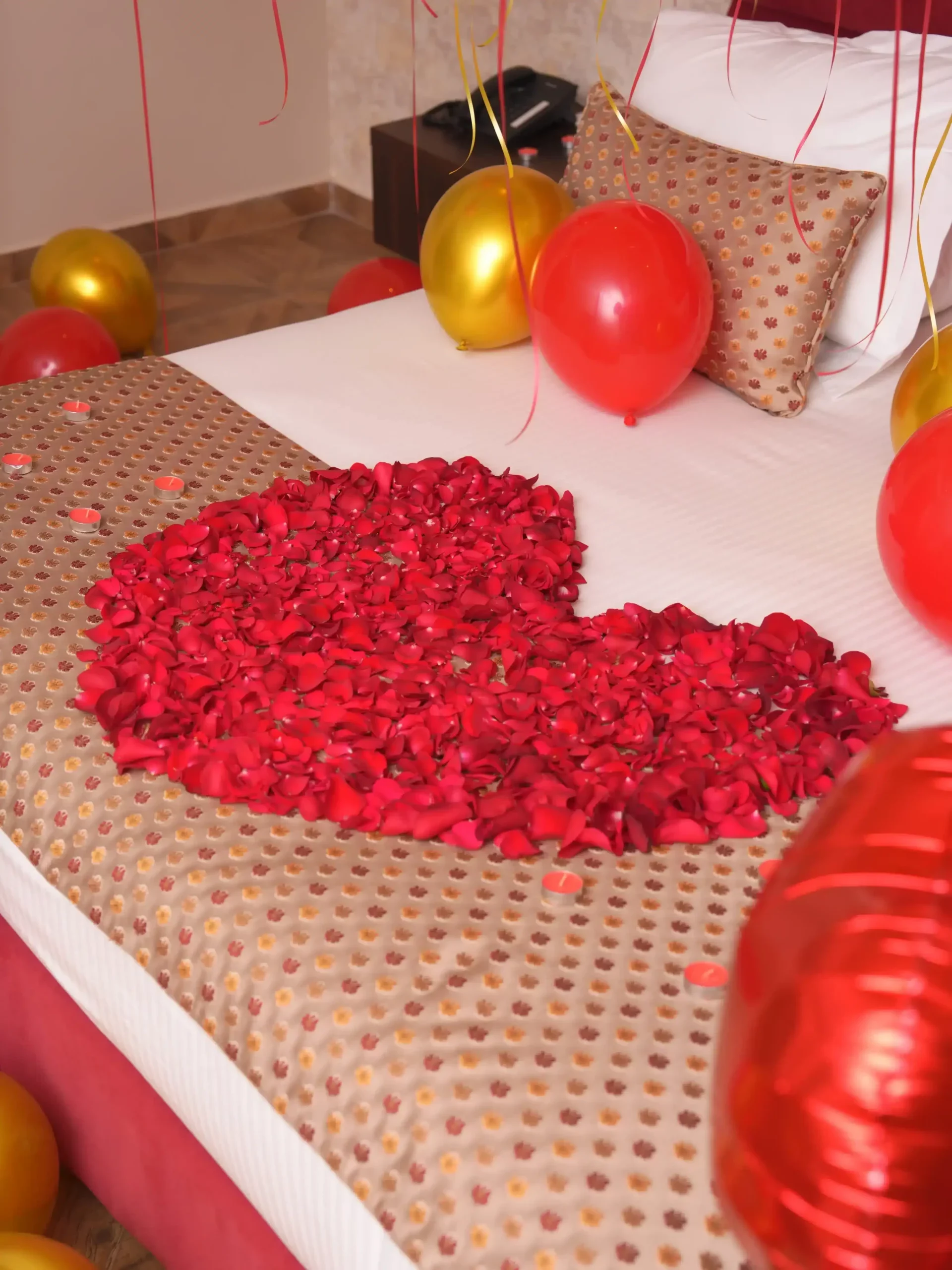 Step into a romantic haven designed to ignite passion and connection. The room is adorned with soft, ambient lighting that sets an intimate mood.