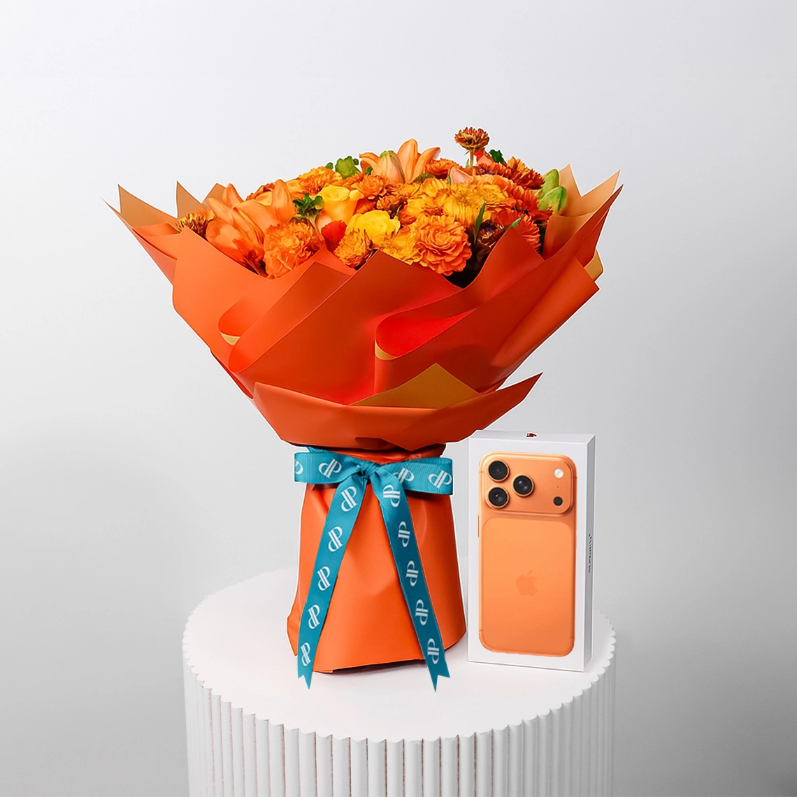 Get the new Apple iPhone 17 Pro Max in Orange with this beautiful flower bouquet.