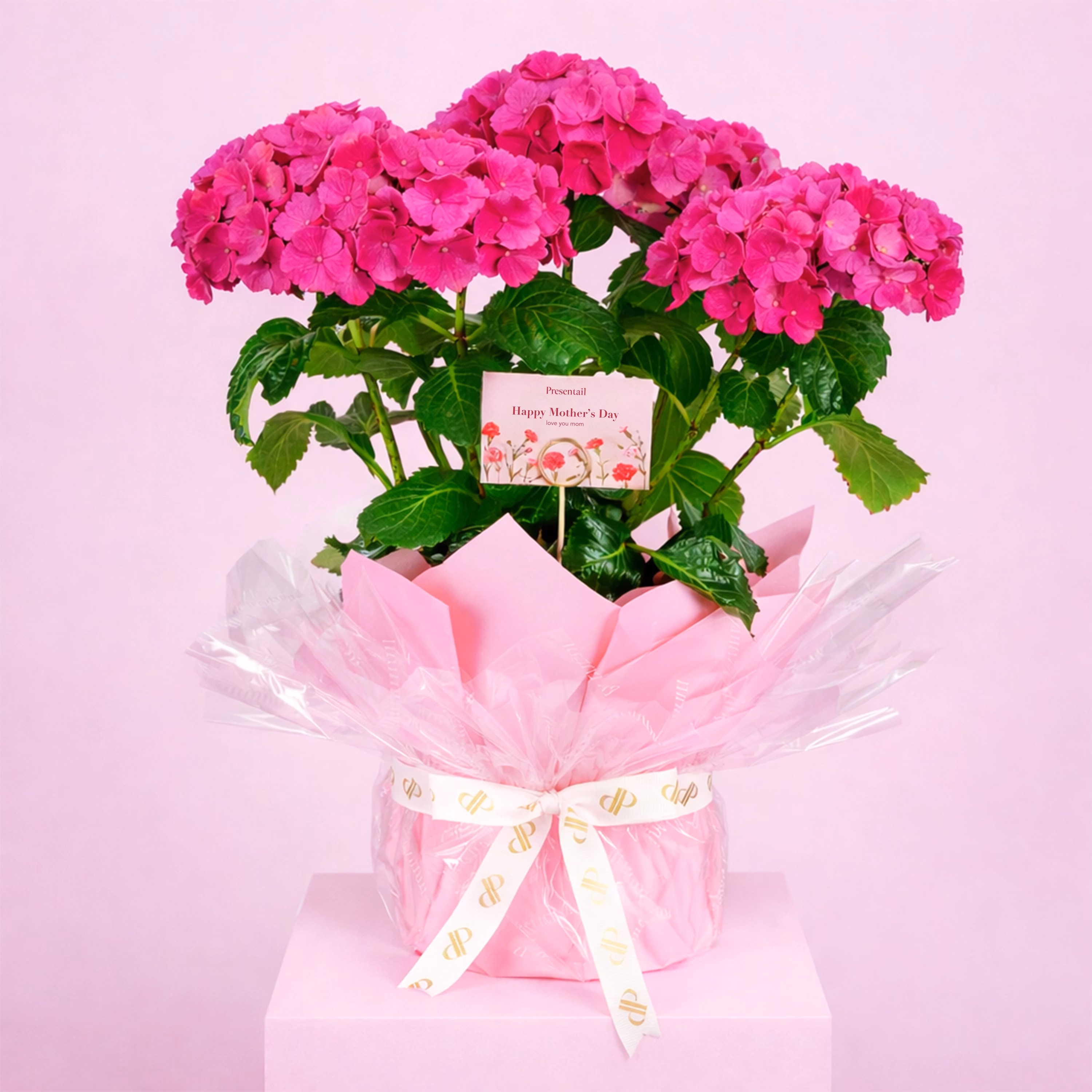 The Fuchsia Hydrangea stands out with its rich color and full, elegant blooms. A stunning floral gift that expresses love and admiration on Mother’s Day.