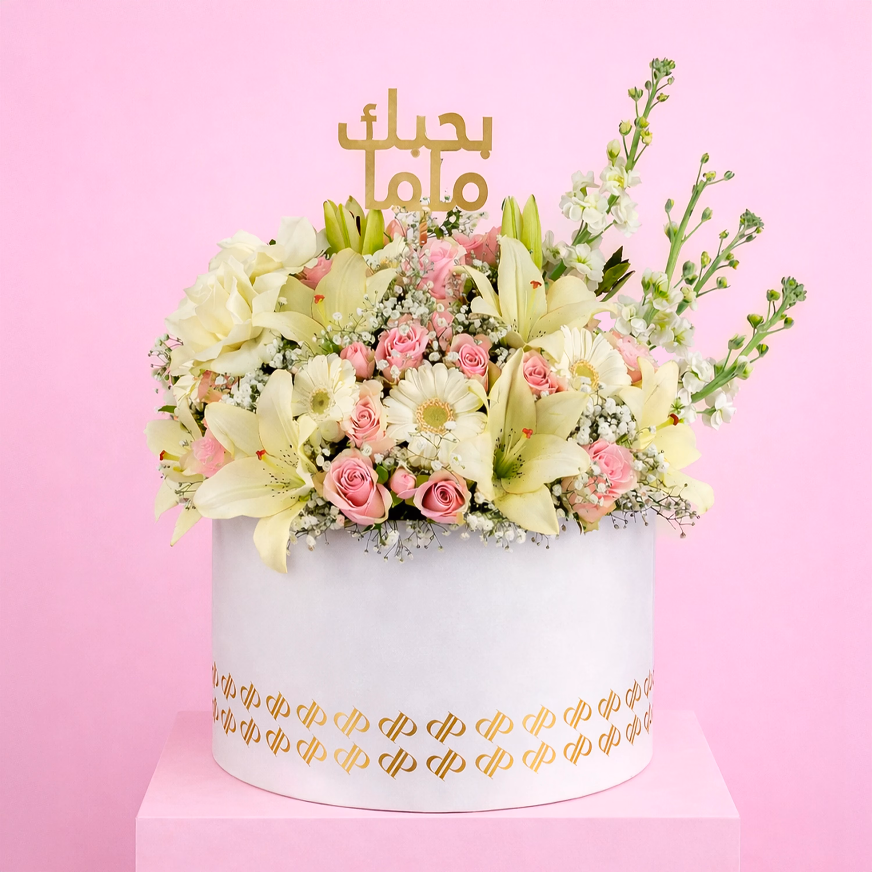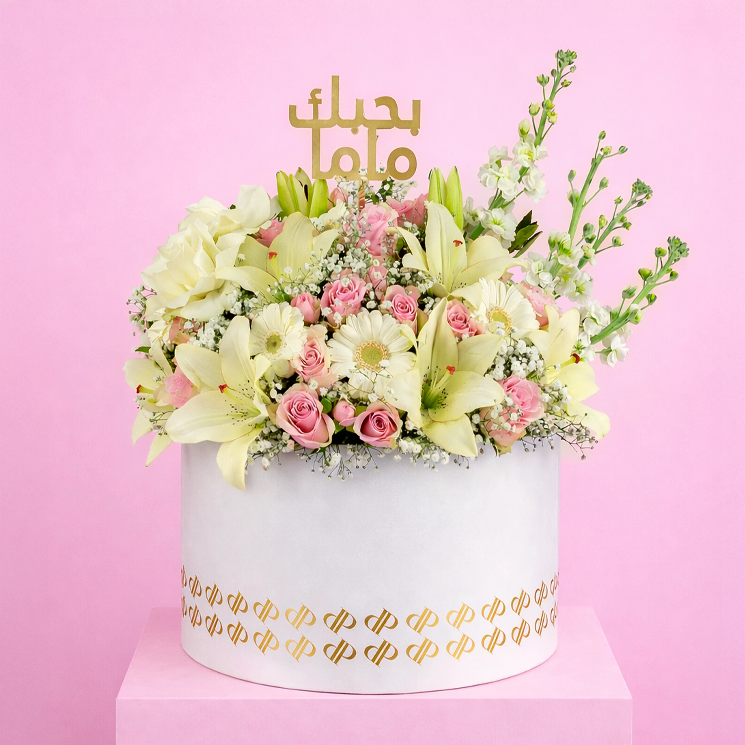 A refined white garden arrangement symbolizing purity, gratitude, and love for Mom.