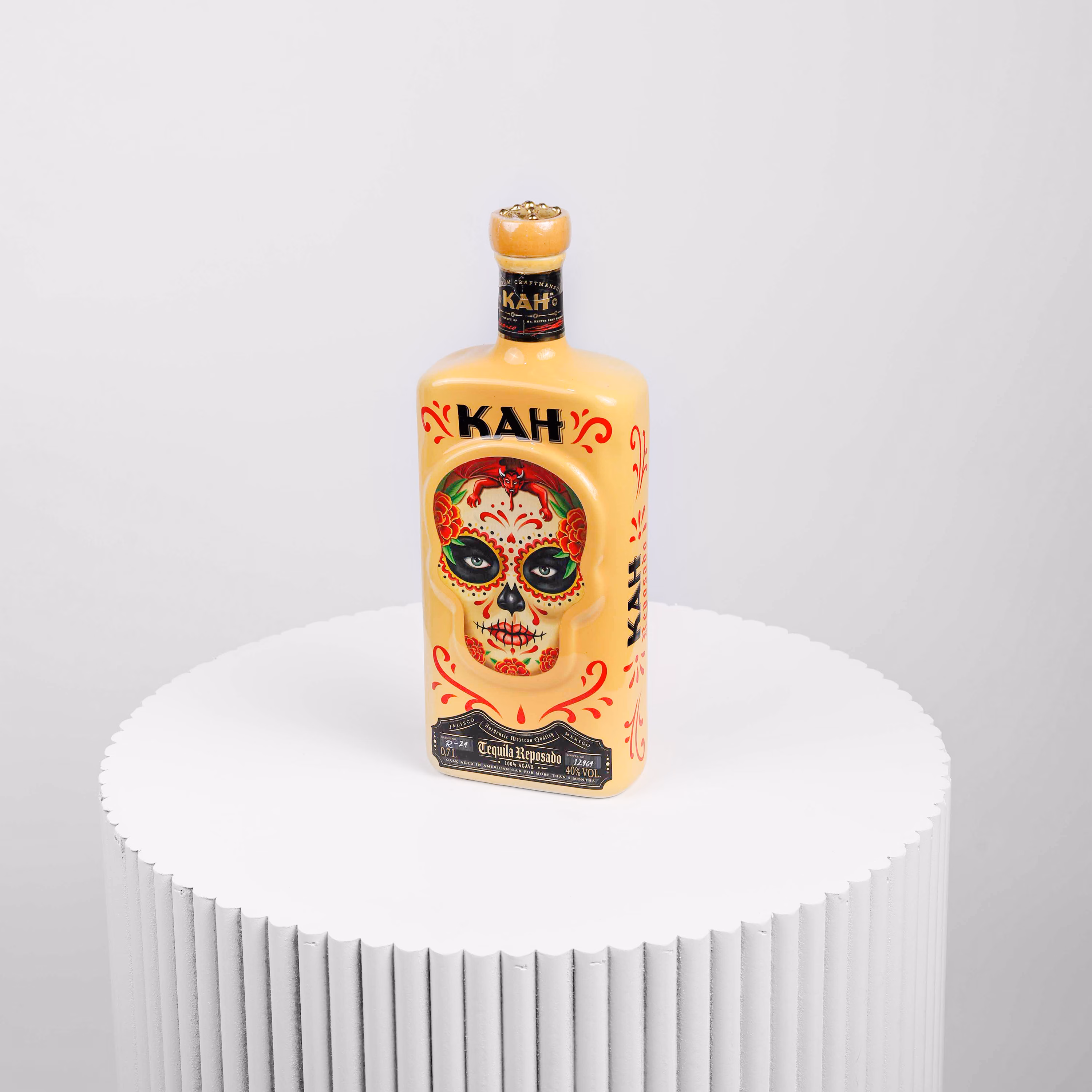 KAH Tequila Reposado is a premium 100% Blue Agave tequila aged in French Limousin oak casks for about 10 months, delivering a full body and beautifully mellow texture. It opens with rich agave sweetness, followed by warm vanilla and caramel notes with just a hint of red fruit and spice. Bottled at 40% ABV, its slow, viscous finish carries herbal undertones that linger. What makes it stand out: the bottle is a striking hand-painted ceramic skull, inspired by “Dia de los Muertos” / Day of the Dead traditions—bold, artistic, and deeply symbolic. It’s made for sipping, display, or gifting