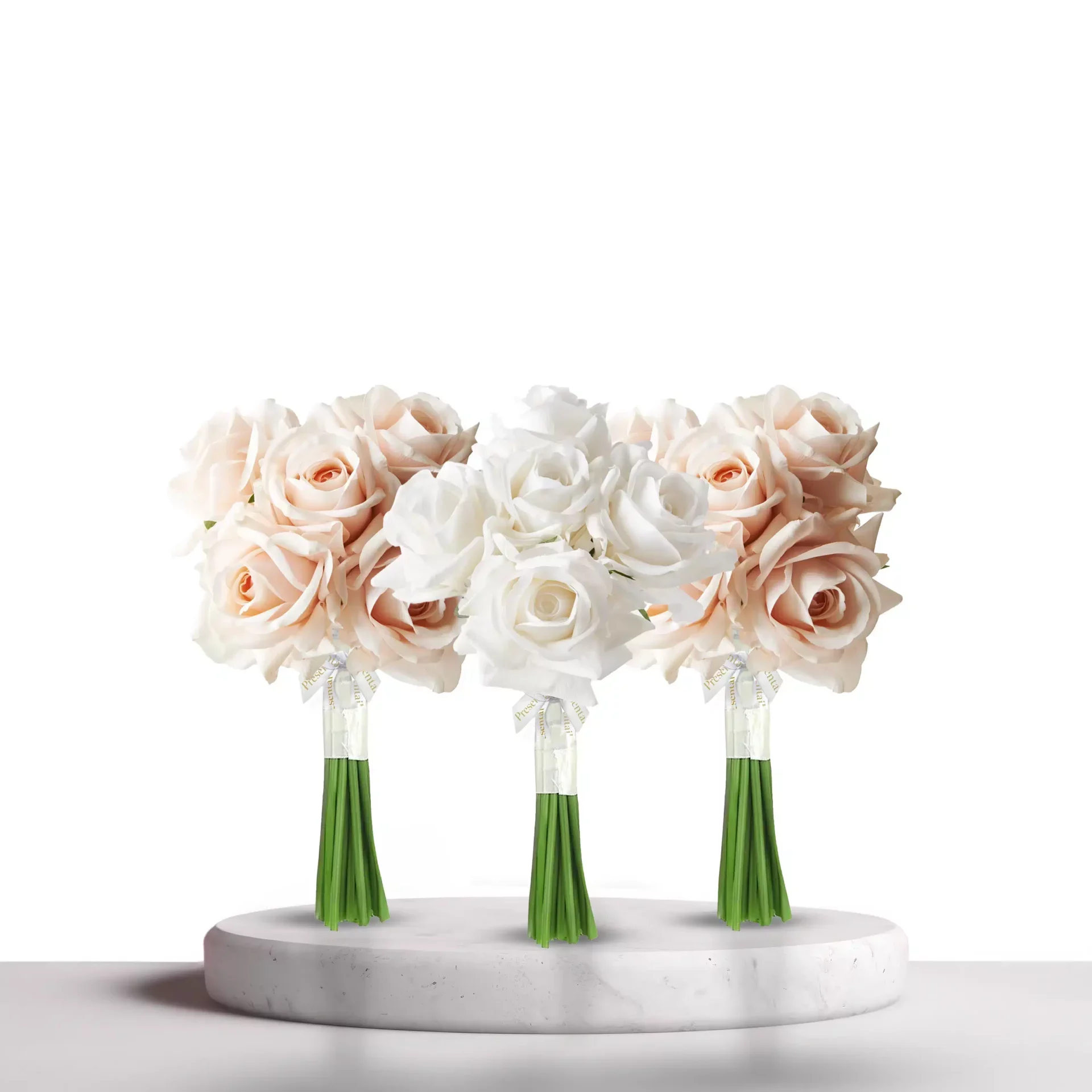 The Once in a Lifetime is a beautiful, simple bridal bundle mini bouquet made from white and Sweet pink roses.