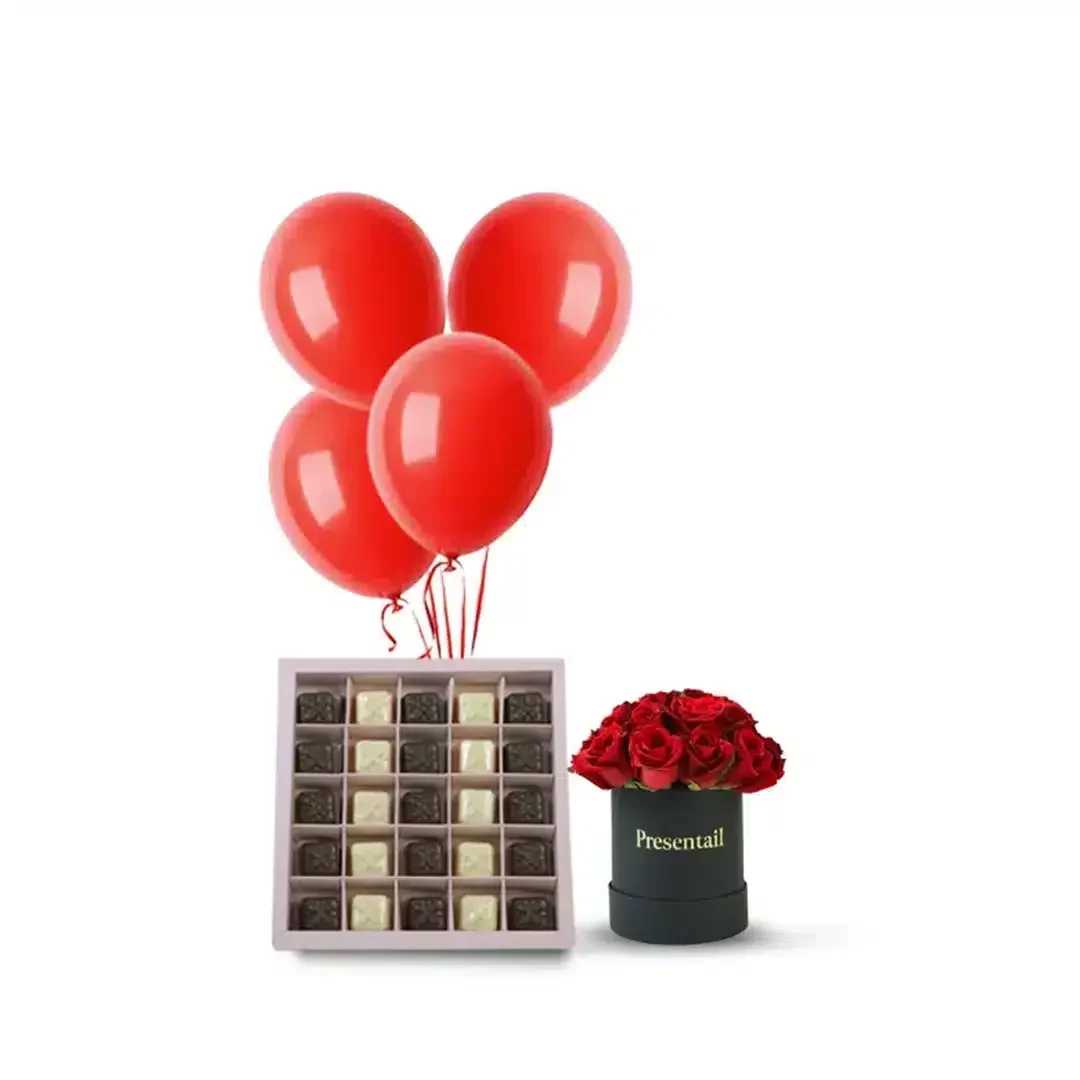 - An assortment of chocolate, truffles, or brownies, in a medium box.