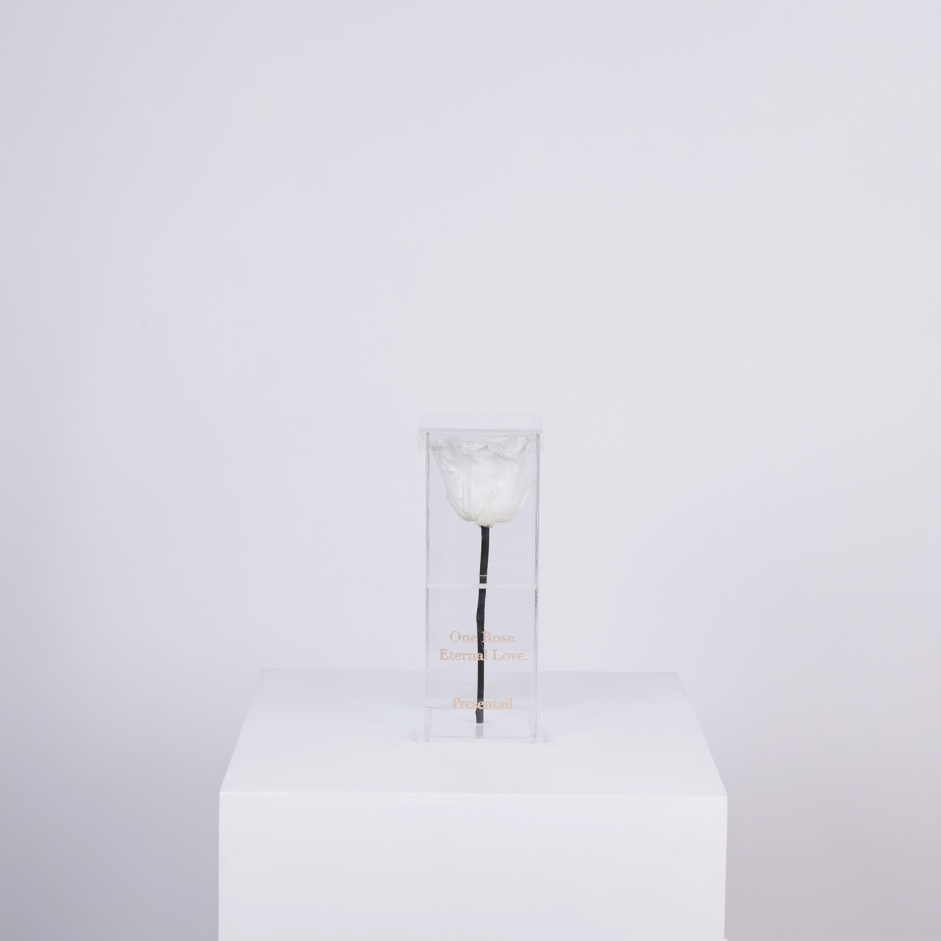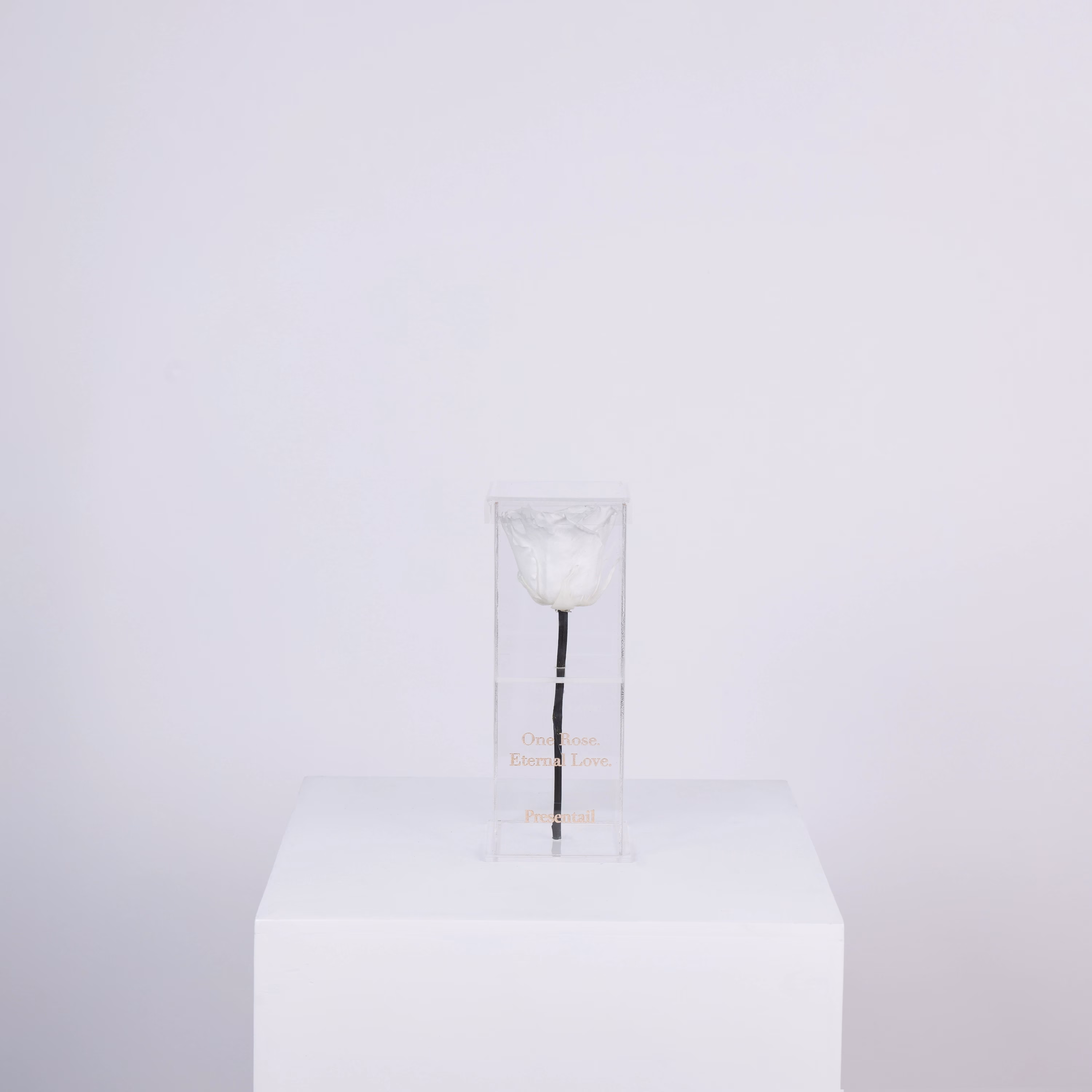 A single preserved white rose designed as a timeless keepsake.