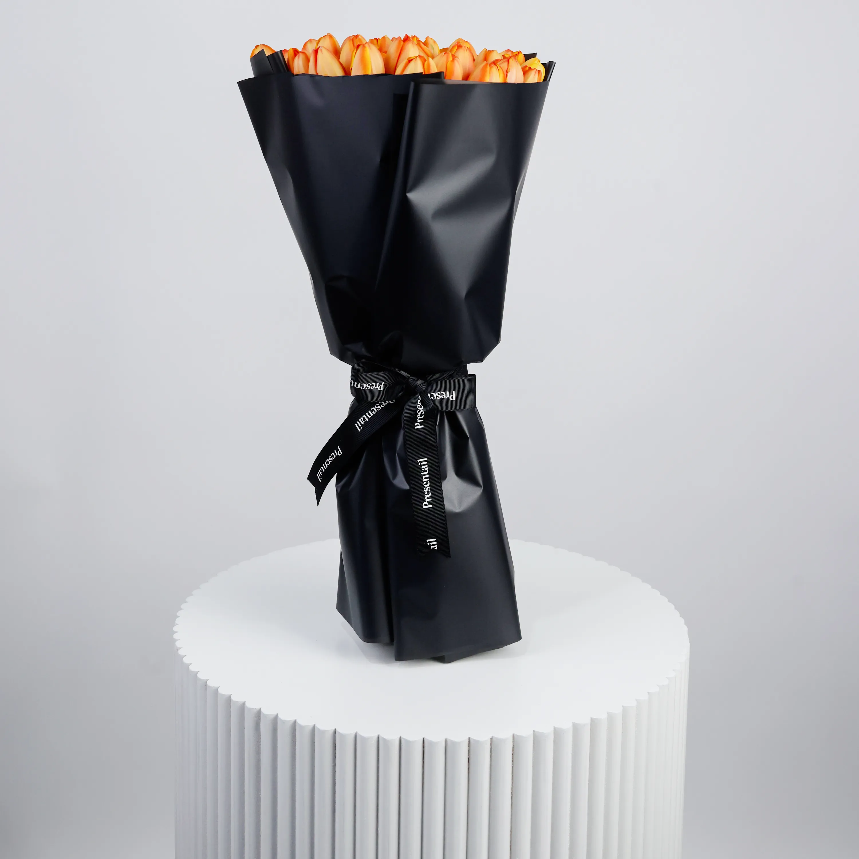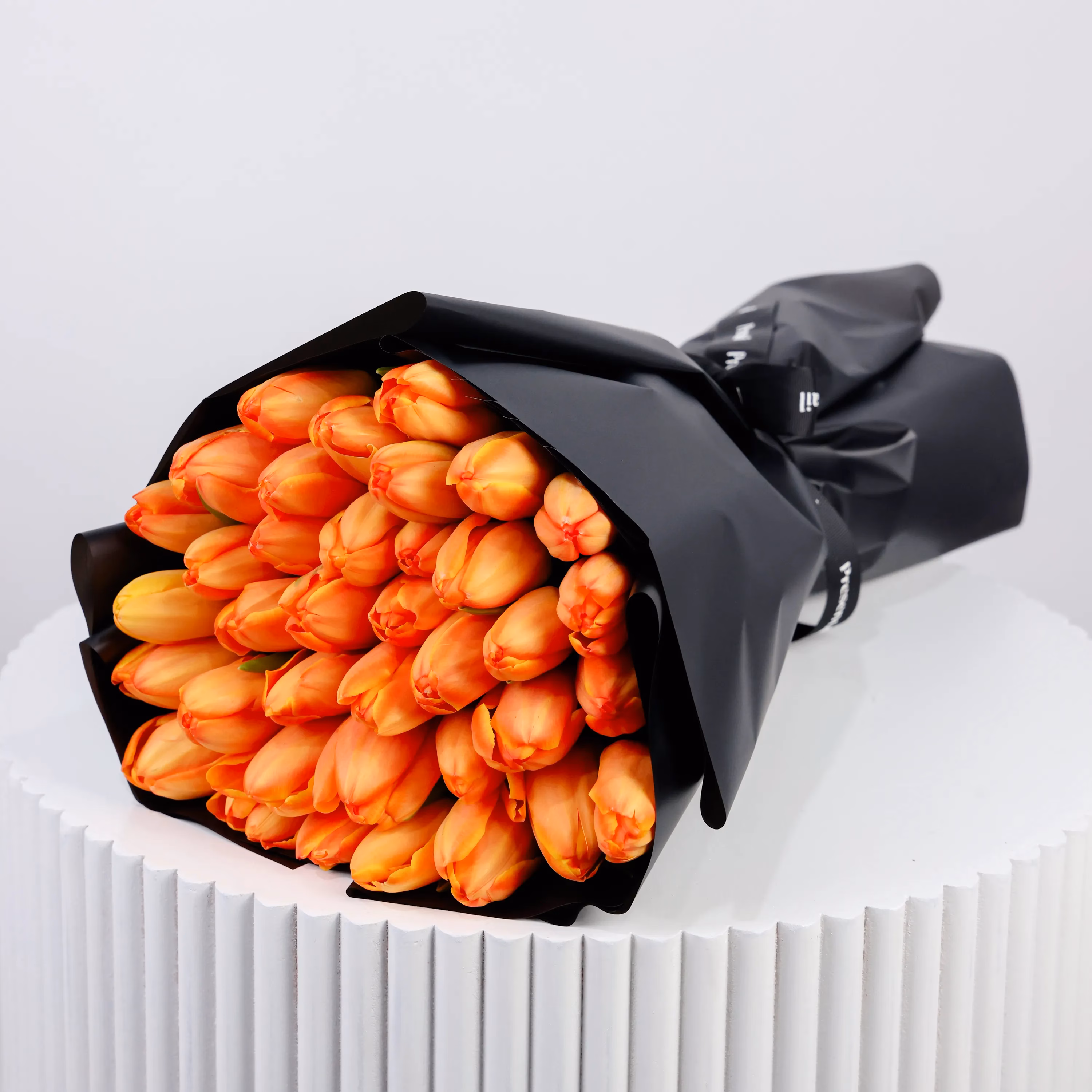 The Sunset Tulip Embrace is a radiant bouquet inspired by warm sunset hues.