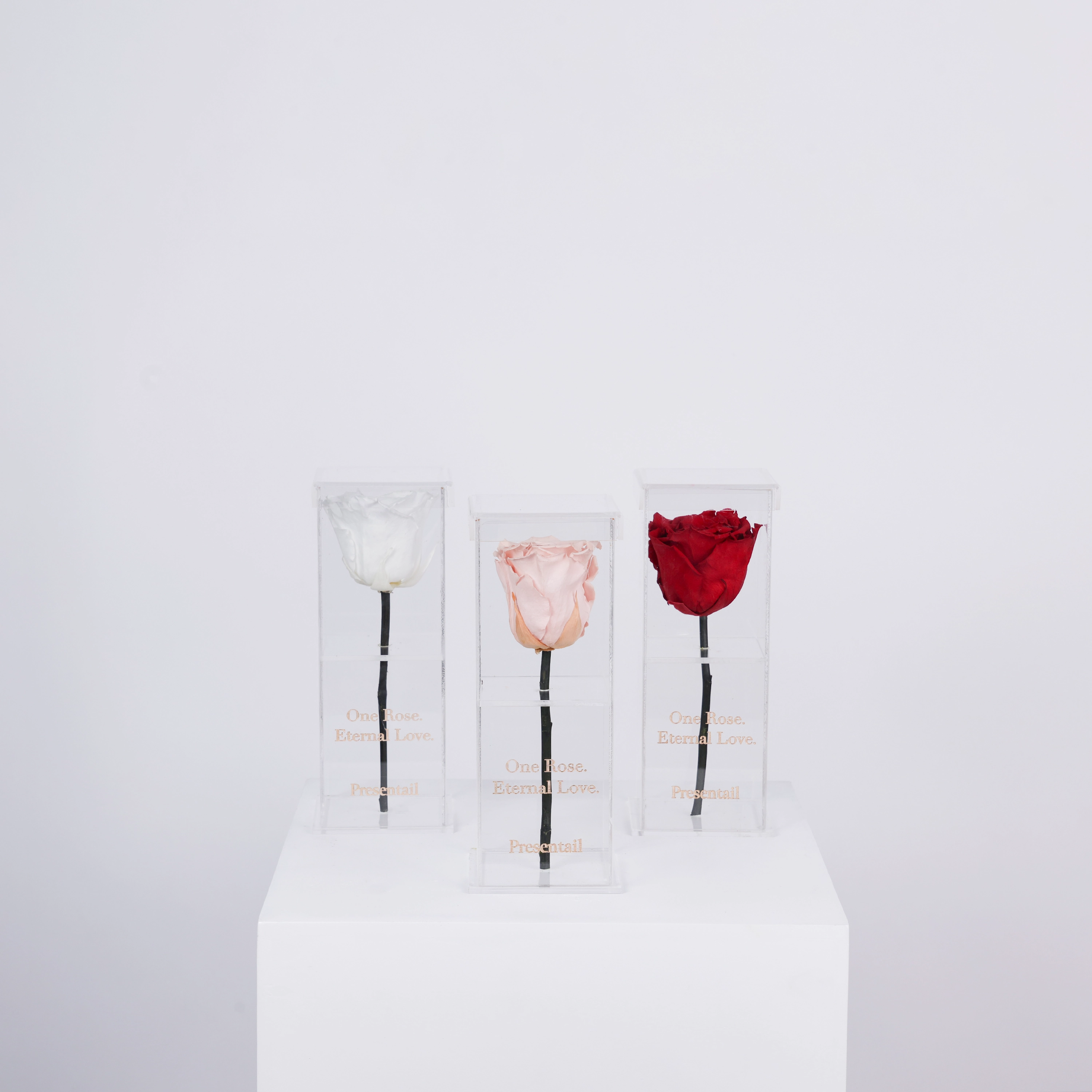The Eternity Bundle is a luxurious trio of preserved roses symbolizing timeless love.